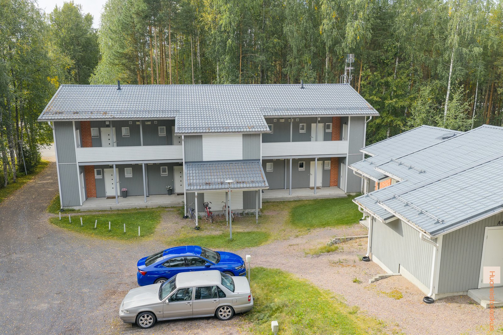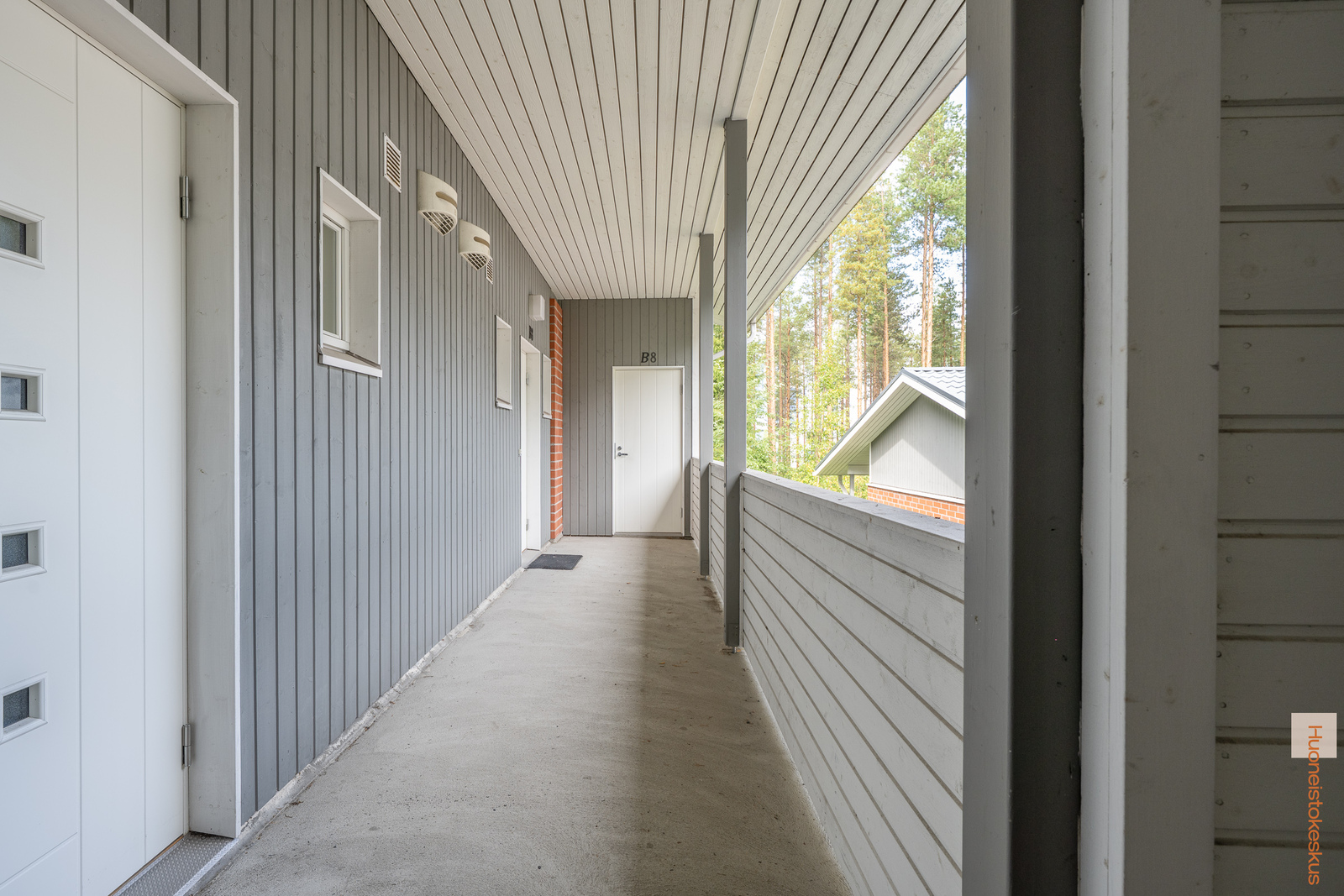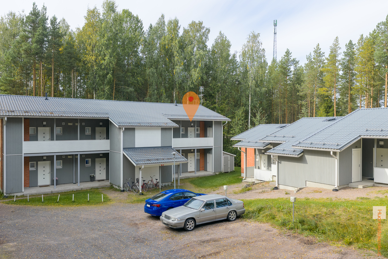 Asunnolle kuuluu myös ulkovarasto sekä pistokkeellinen autopaikka.