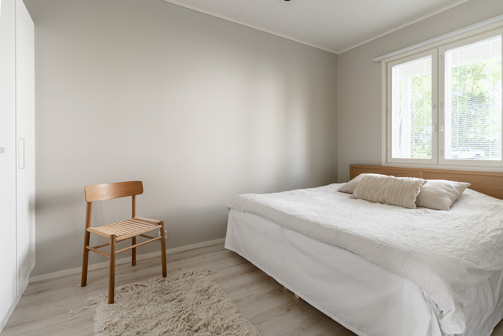 | Makuuhuoneen kuvaus | Seinät (maali), lattiat (laminaatti) |