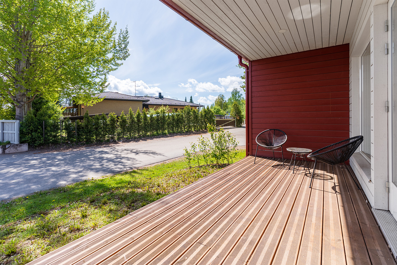 Ihana terassillinen pikkukoti vapautumassa nopeastikin seuraaville asukkaillensa.