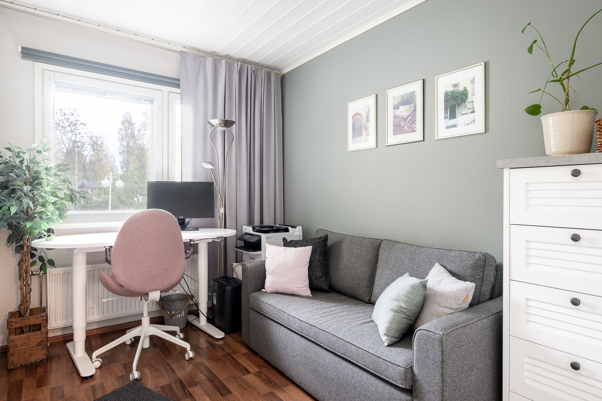 | Olohuoneen kuvaus | Seinät (maali), lattiat (laminaatti) |