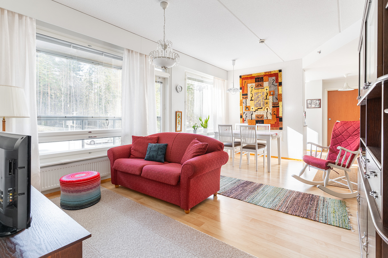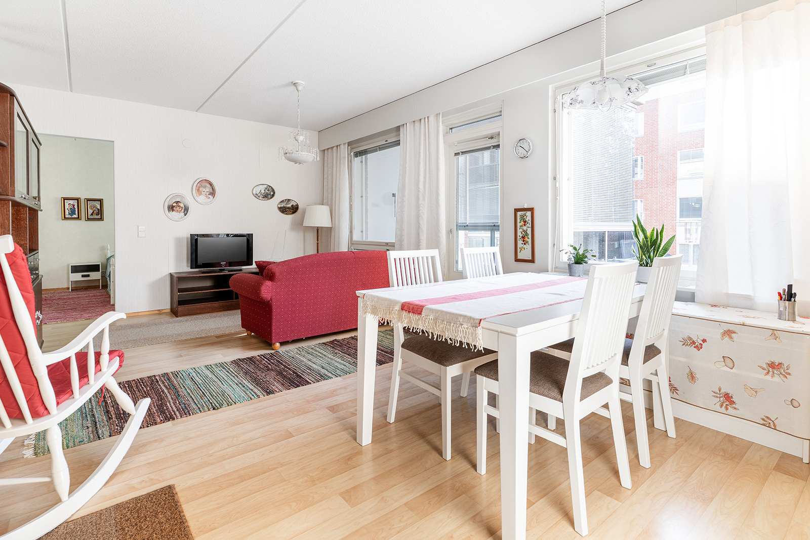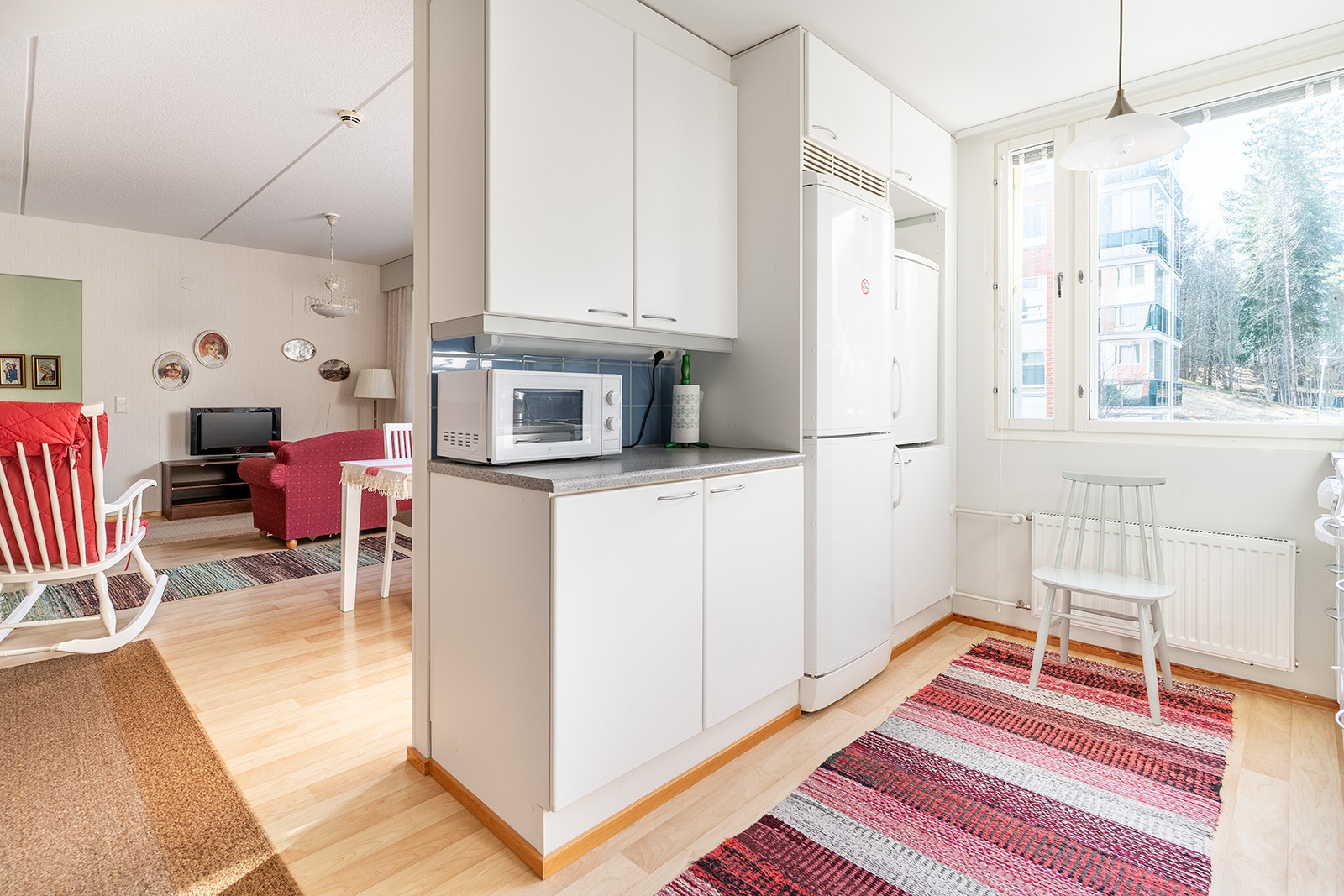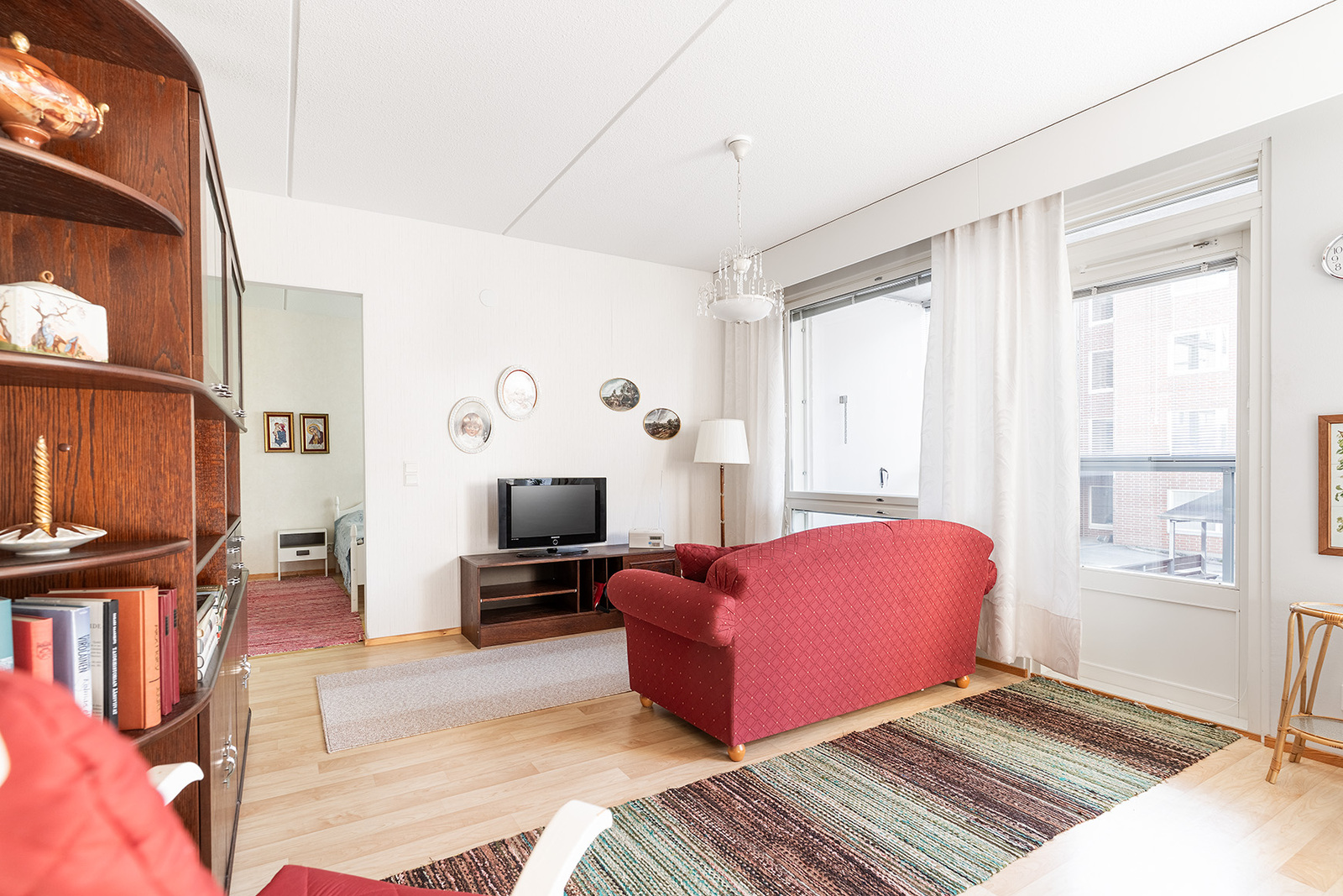 Hyväpohjainen saunallinen huoneisto. Erillinen keittiötila ja mukavankokoinen olohuone. Olohuoneesta käynti tilavalle lasitetulle parvekkeelle.