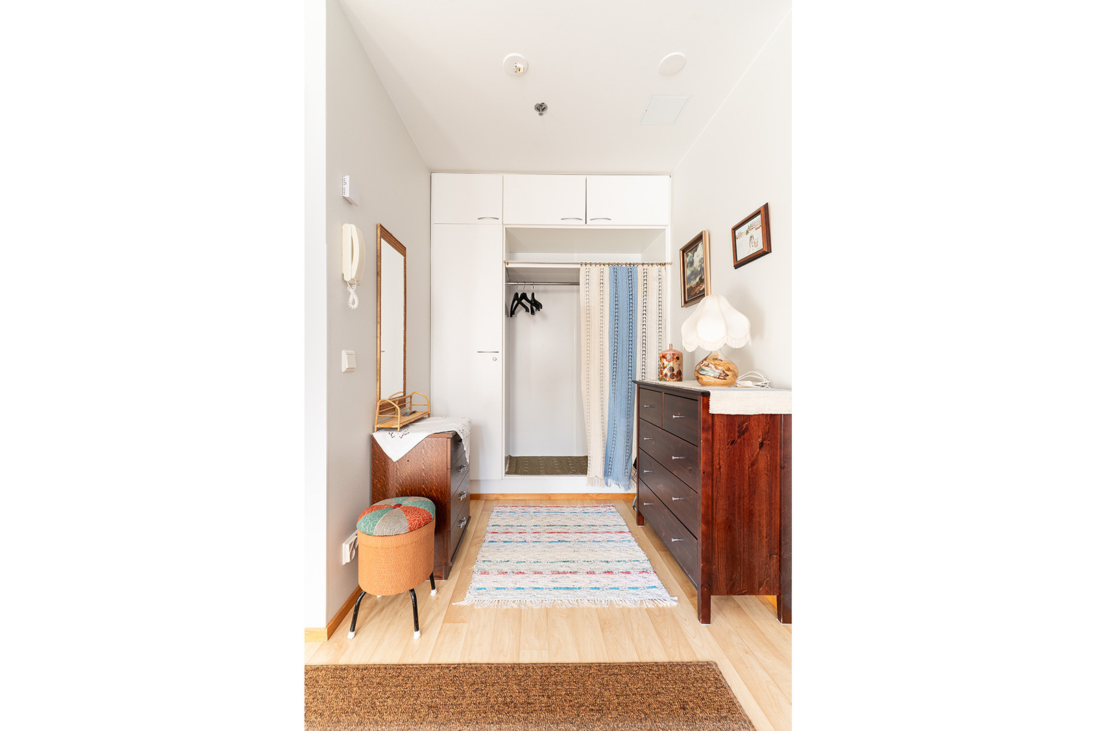 | Olohuoneen kuvaus | Seinät (tapetti), lattiat (laminaatti) |