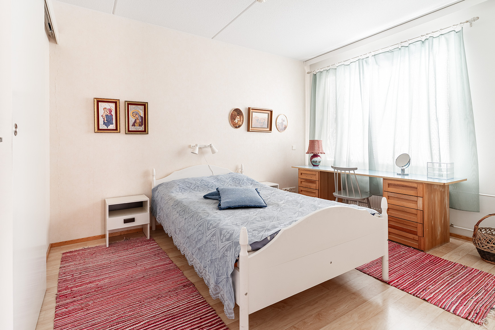 | Makuuhuoneen kuvaus | Seinät (tapetti), lattiat (laminaatti) |