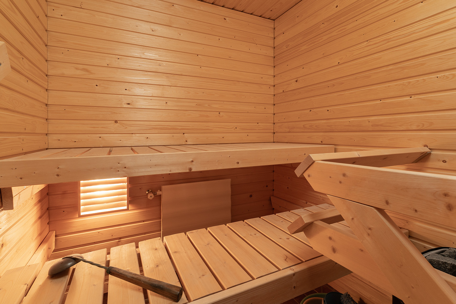 | Saunan kuvaus | Seinät (puu), lattiat (laatta), Sähkökiuas |