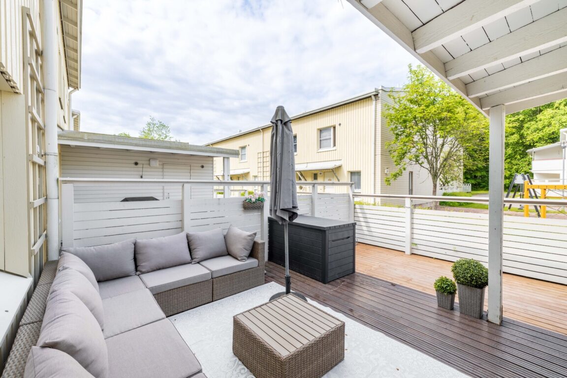 Rauhallisella pientaloalueella koulujen ja urheilupuiston lähellä kodikas ja toimiva koti nelihenkiselle perheelle paritalossa isossa taloyhtiössä. Alakerrassa on valoisa olohuone, josta on näkymät omalle aidatulle pihalle, keittiö sekä erillinen wc. Yläkerrassa on kolme makuuhuonetta, iso vaatehuone sekä remontoitu kylpyhuone ja sauna. Asunnossa on yhteensä 2 wc:tä.