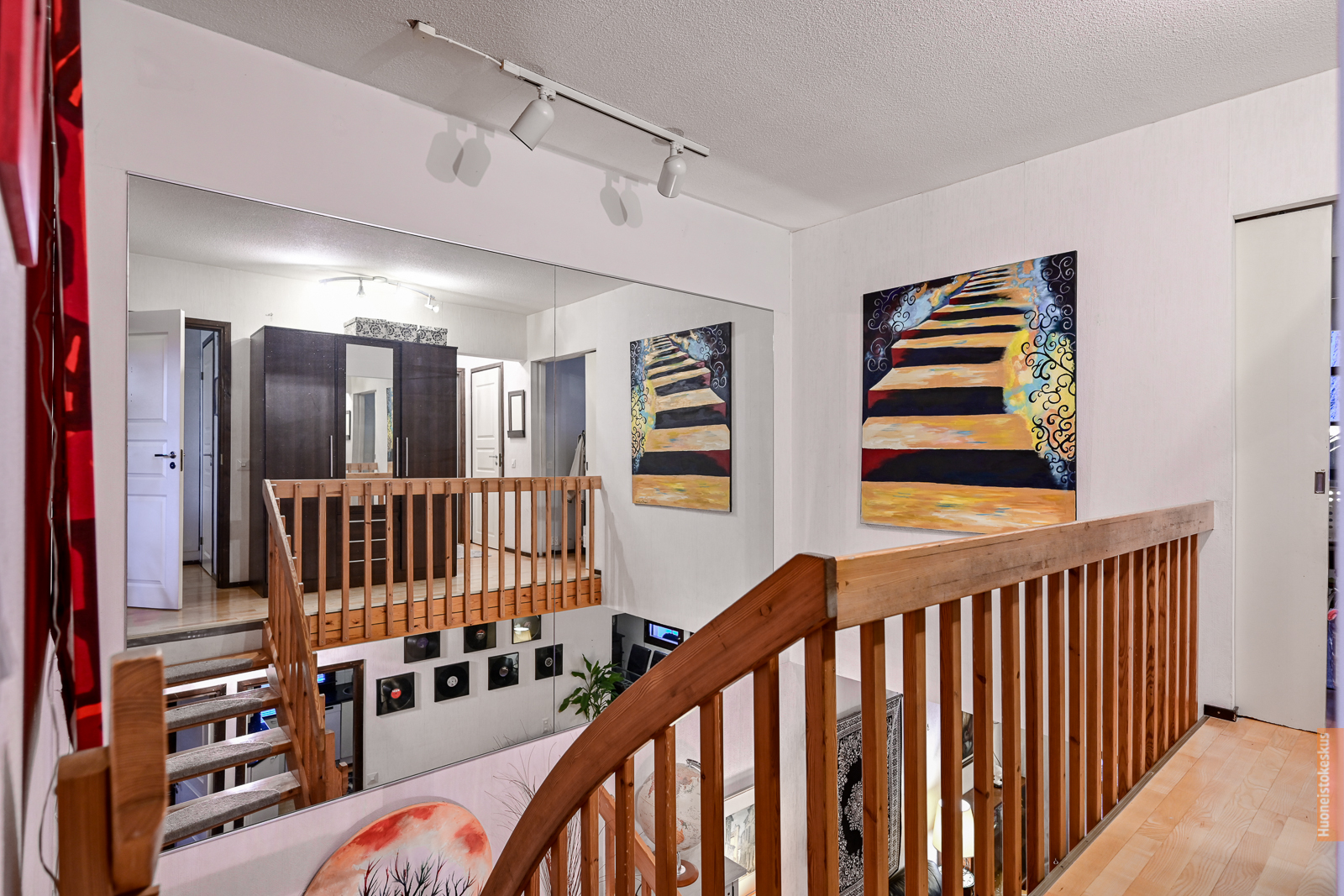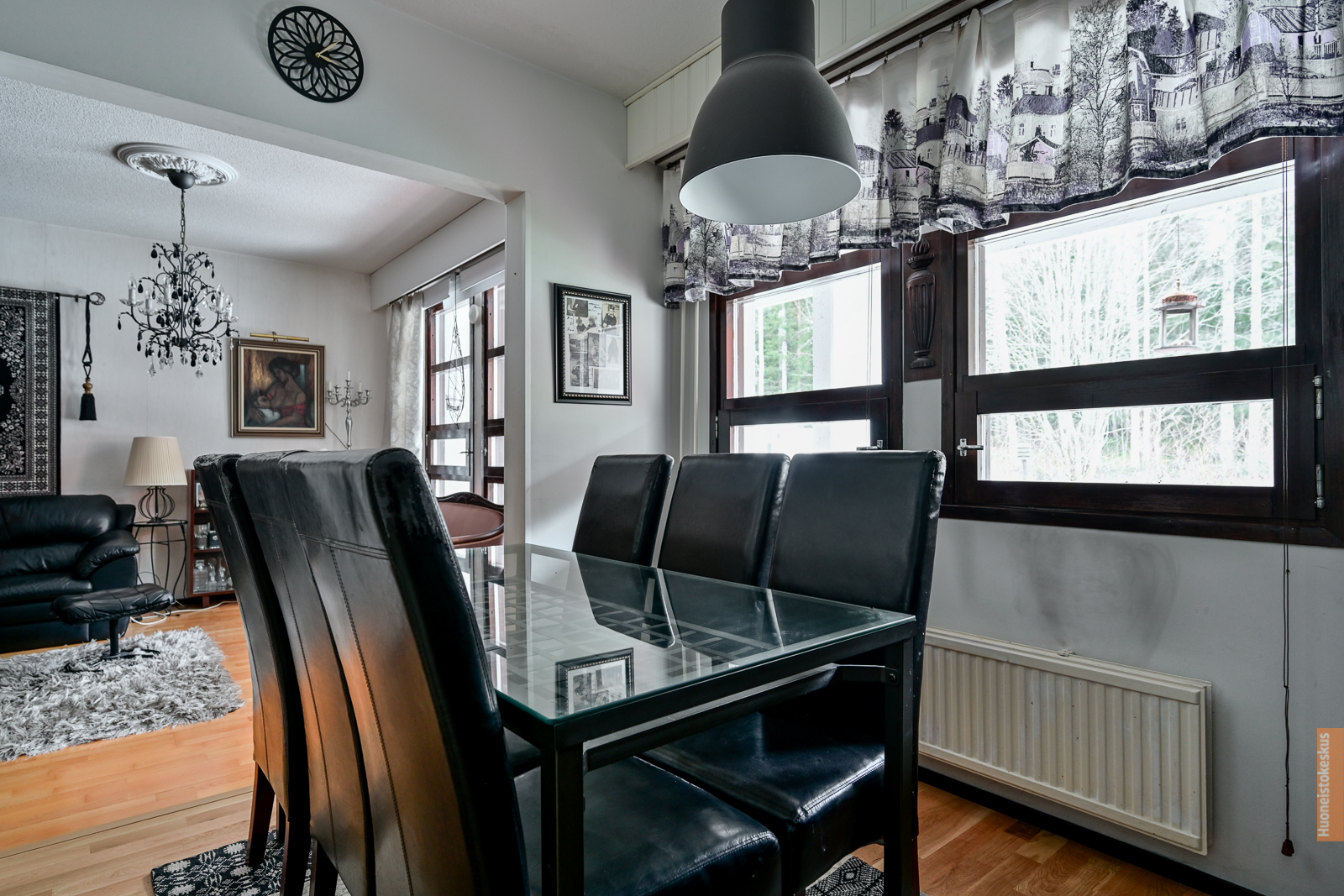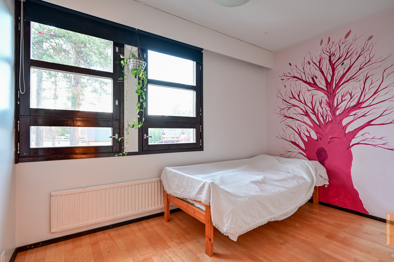 | Muut huoneet ja tilat | Ruokailutilassa maalattu taideseinä, samoin alakerran makuuhuoneessa maalattu taideseinä sekä pimennysverhot. Yhdessä yläkerran makuuhuoneessa taideseinä. Molemmissa kerroksissa vaatehuoneet. Yläkerrassa 2 kpl ja toinen todella iso, muovimattolattiat. Alakerran vaatehuoneessa laattalattia. |