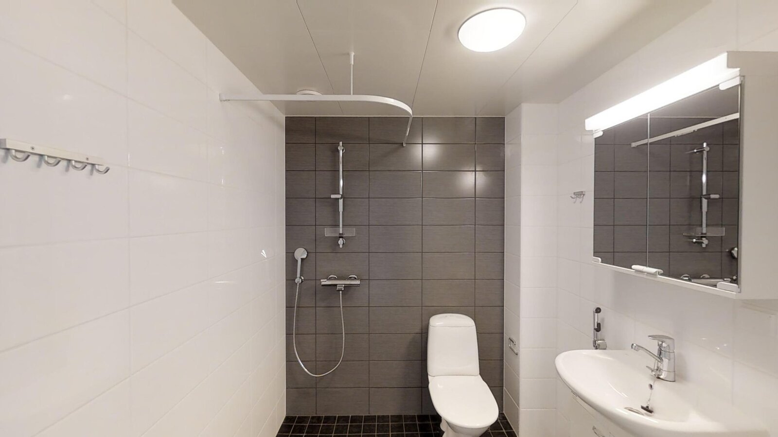 WC-istuin, lattialämmitys, peilikaappi, pesukoneliitäntä, suihku ja kiinteät valaisimet, seinät (kaakeli), lattiat (laatta) |
