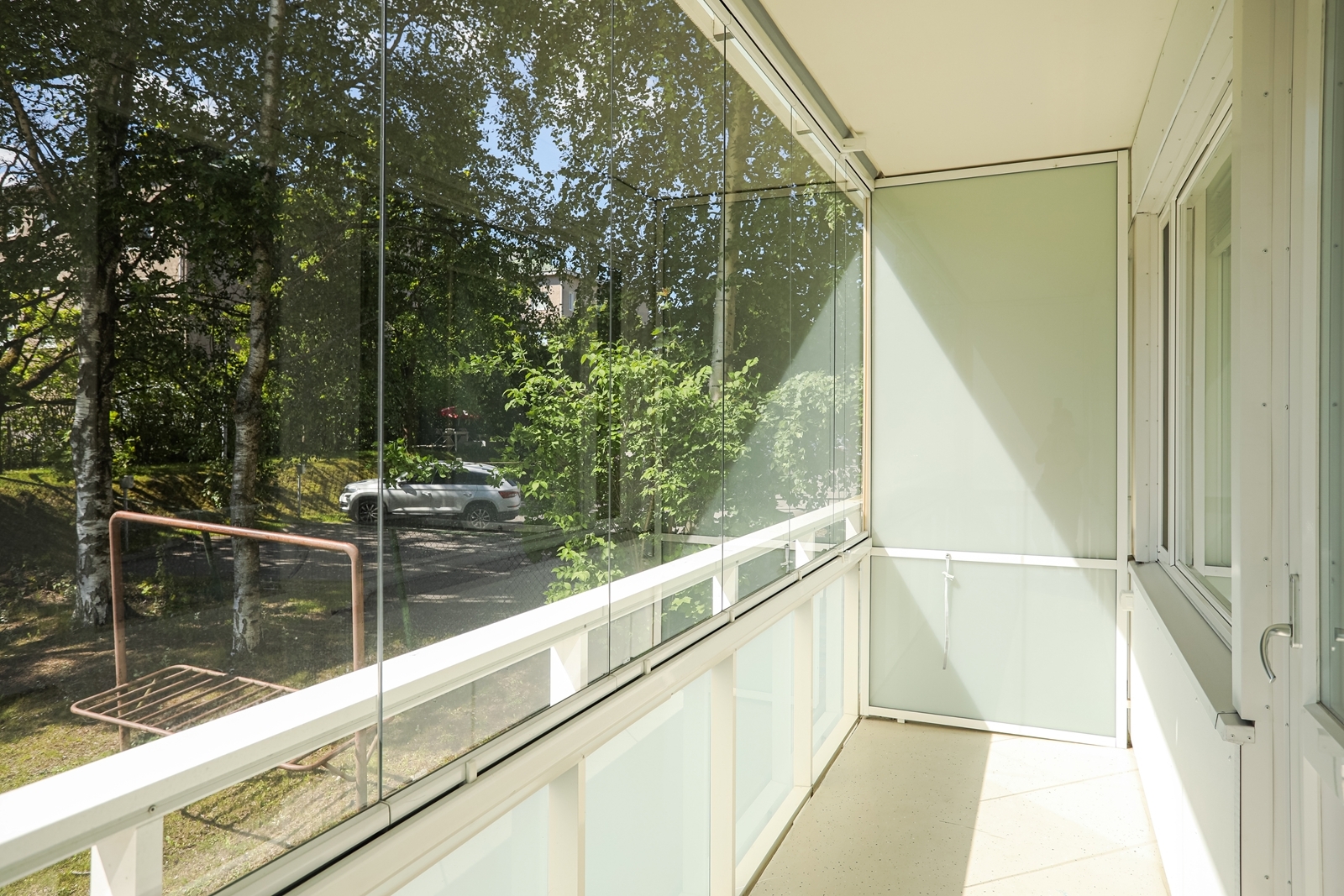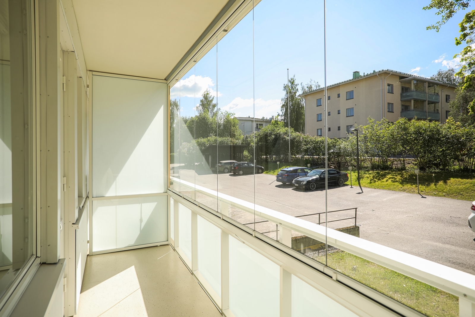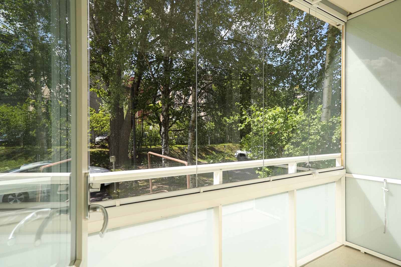 Asunto avautuu rauhalliselle takapihalle ja asunnon levyinen lasitettu parveke suuntautuu lounaaseen, joten voit nauttia auringosta ja kauniista maisemista.