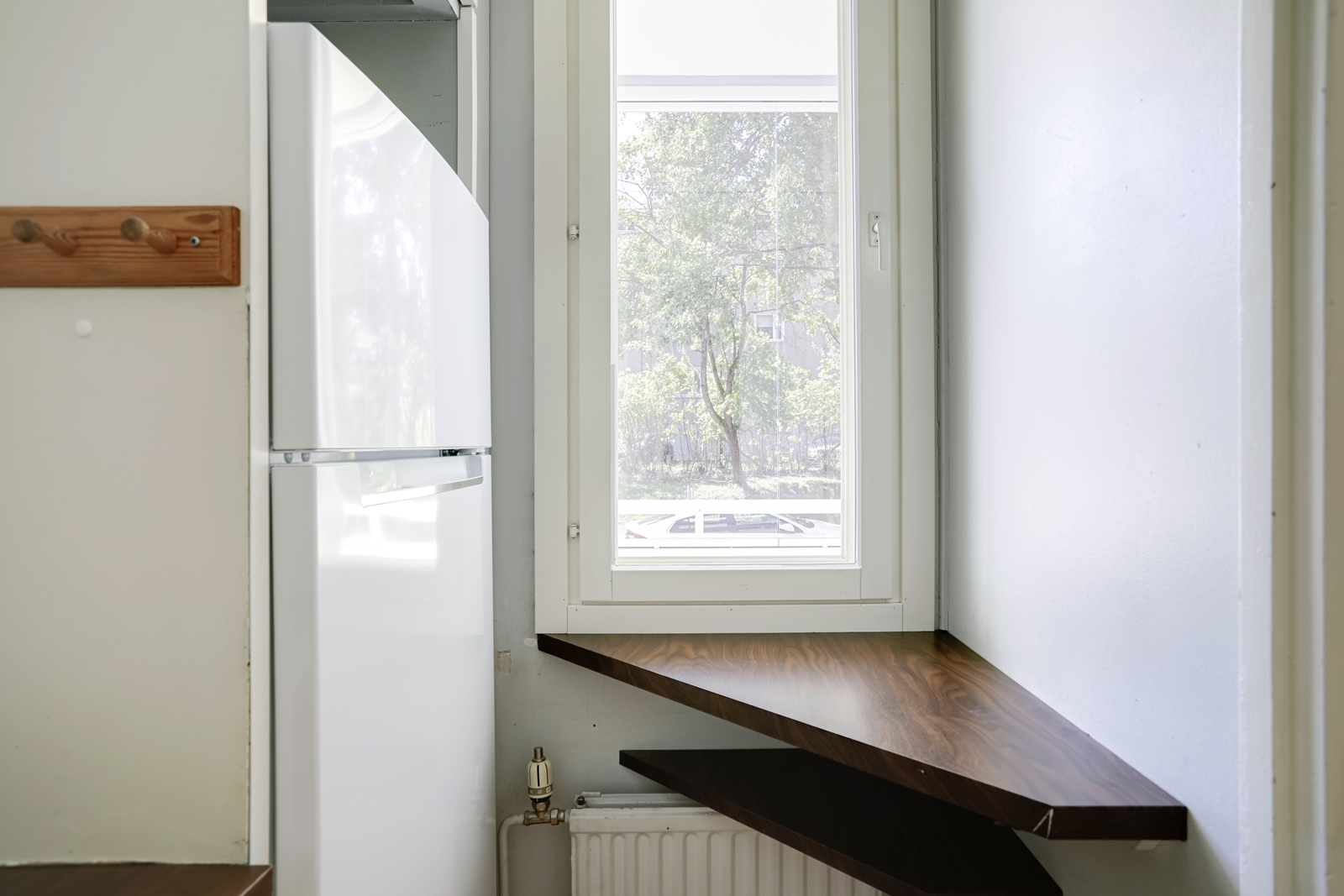 Kylpyhuone on peruskorjattu LVIAS-remontin yhteydessä vuosina 2016-2017, joten se on moderni ja toimiva. Muutoin pinnat kaipaavat päivitystä, joten voit tuoda omaa tyyliäsi asuntoon.
