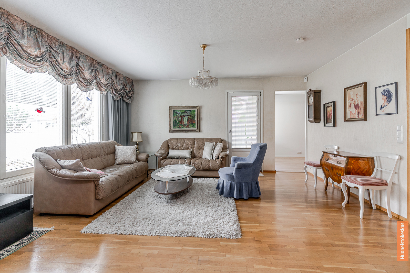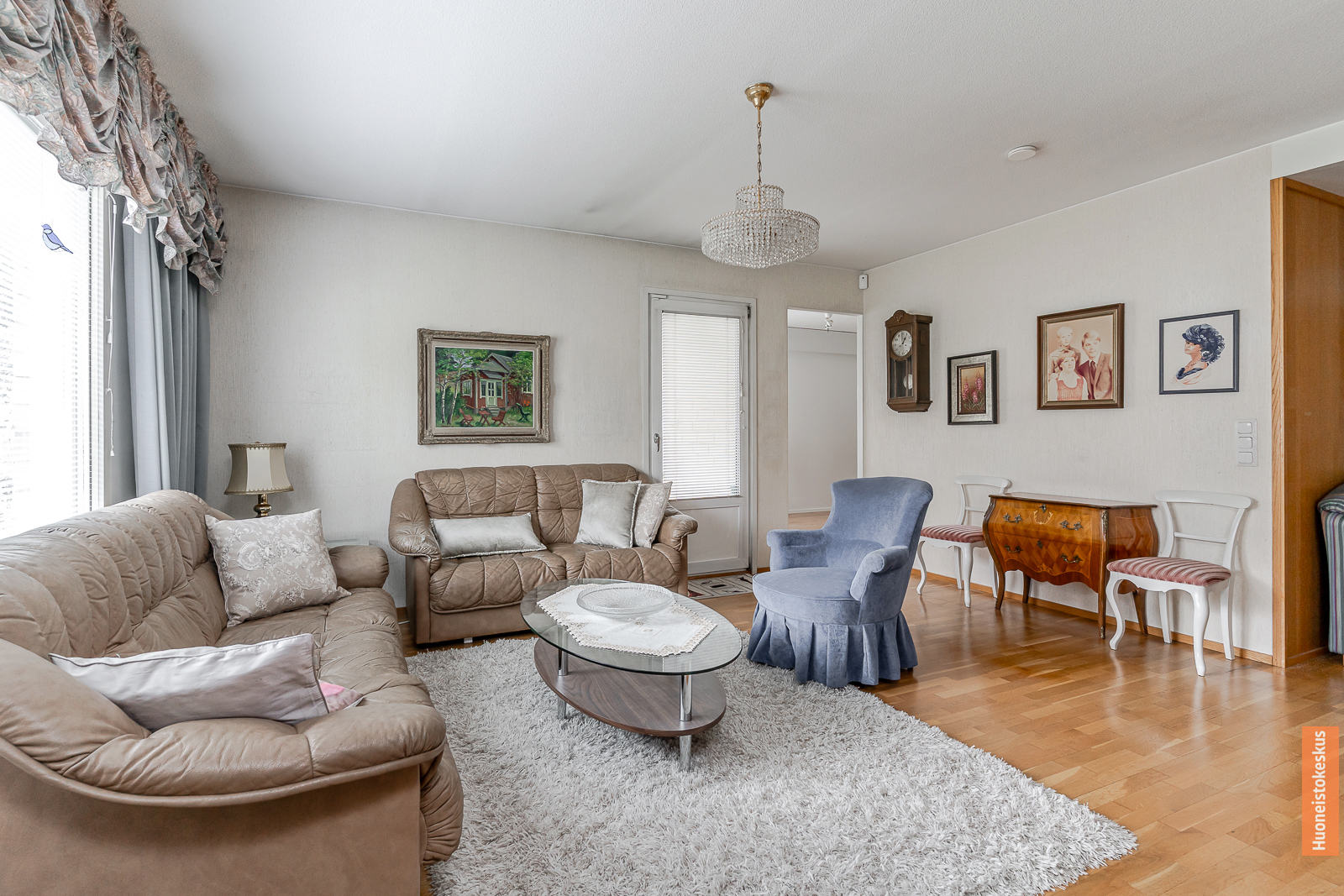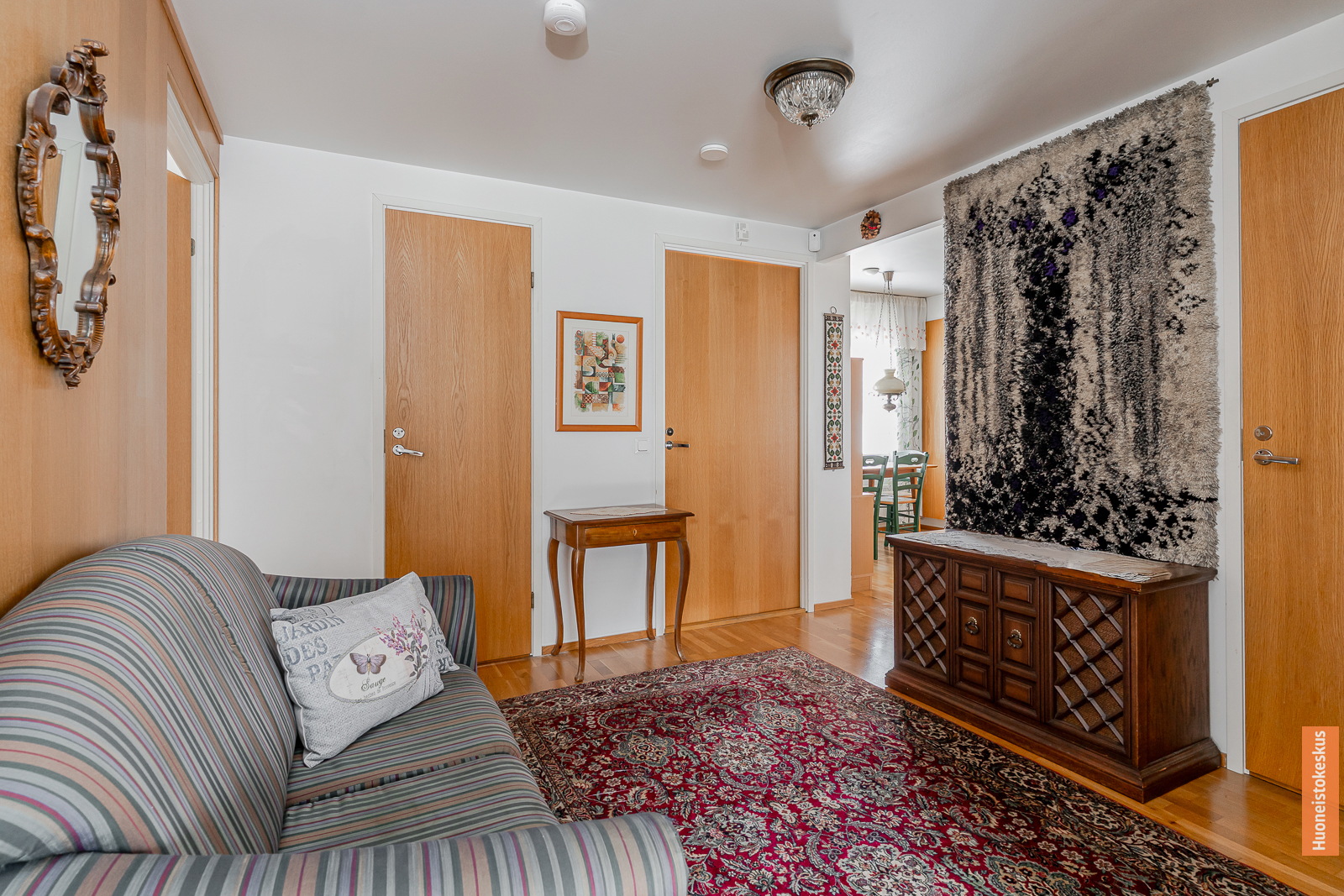 | Olohuoneen kuvaus | Seinät (tapetti ja maali), lattiat (parketti) |