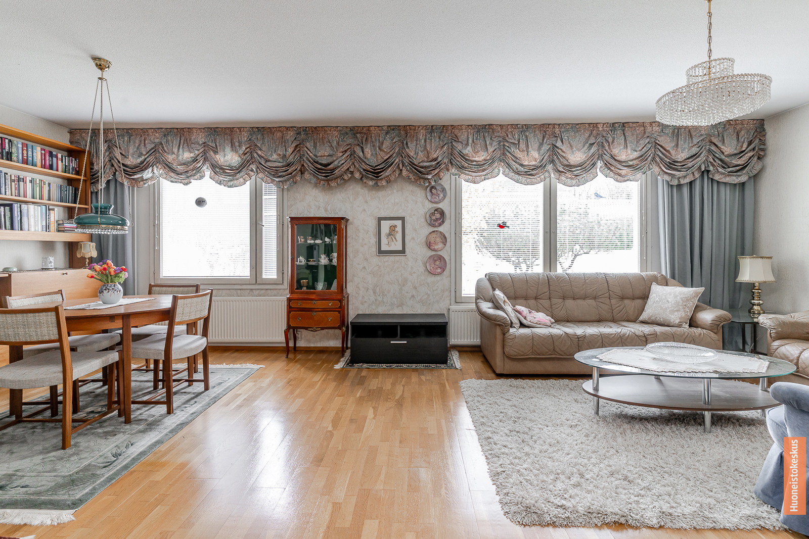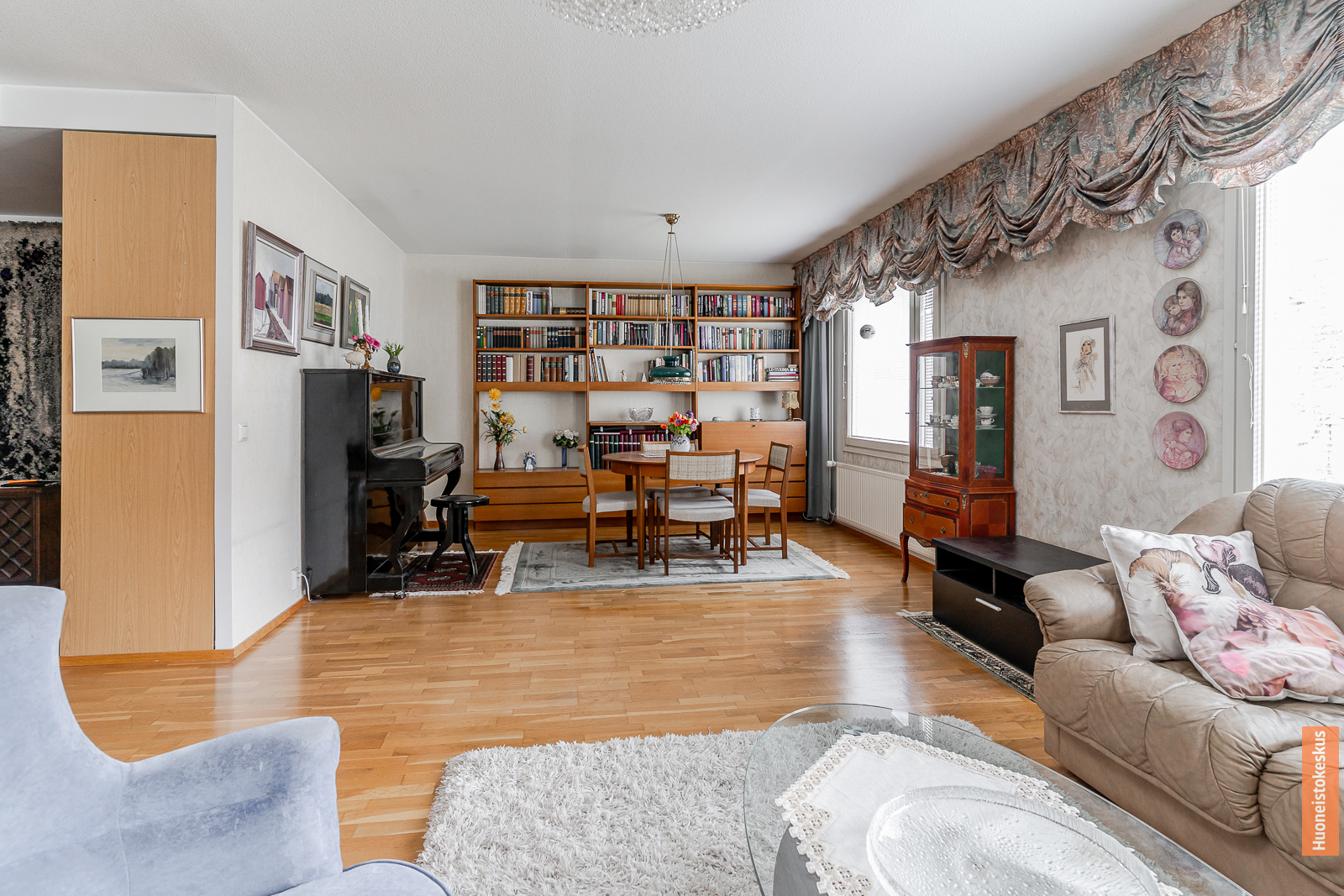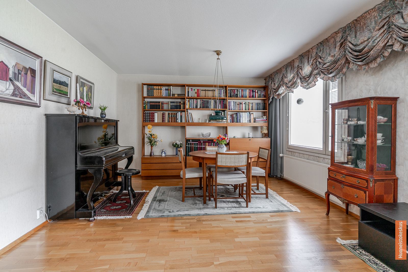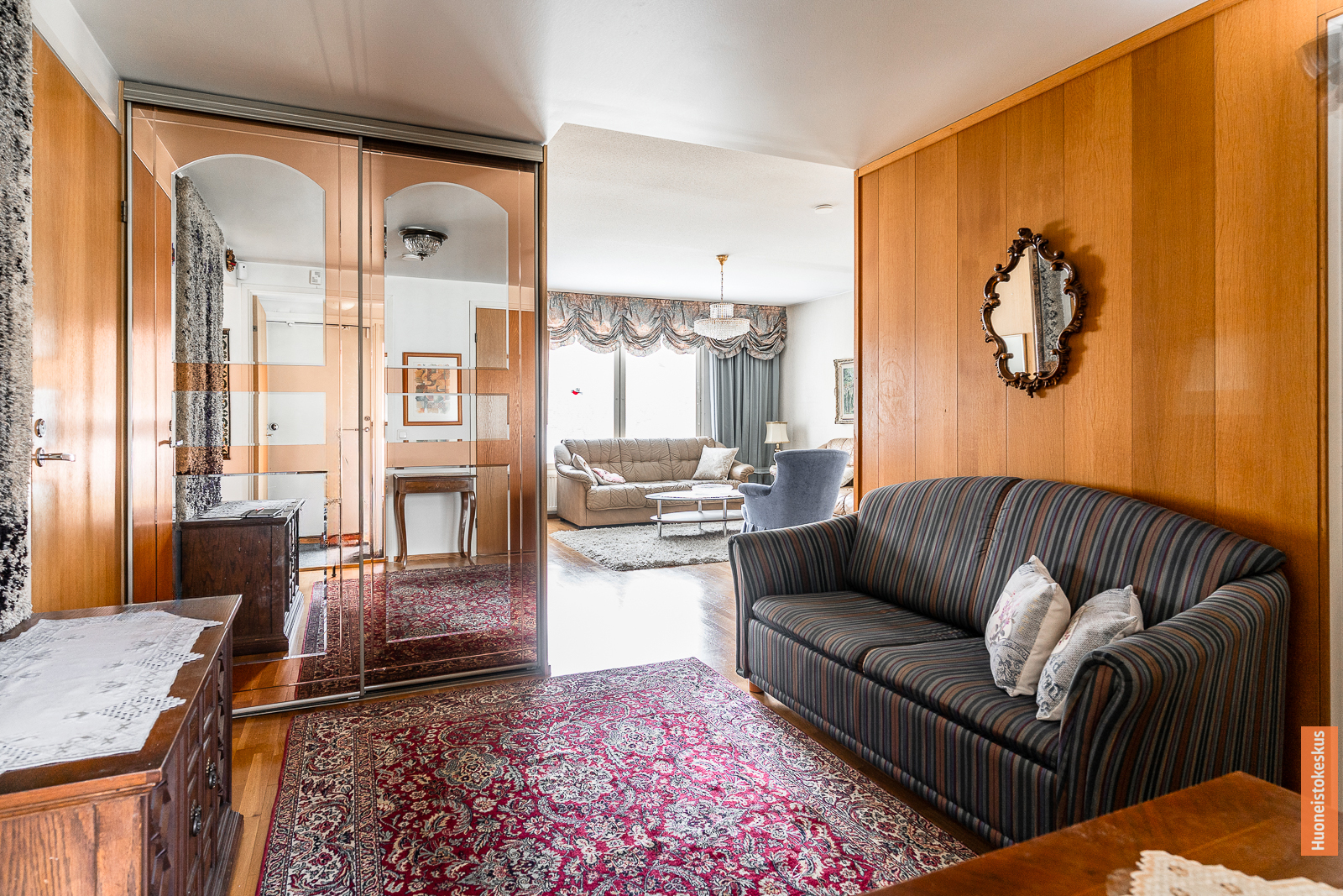 | Olohuoneen kuvaus | Seinät (tapetti ja maali), lattiat (parketti) |