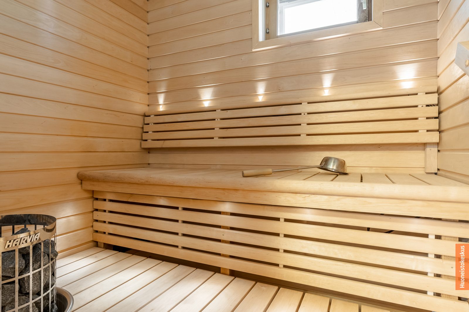 | Saunan kuvaus | Seinät (puu), lattiat (laatta), Sähkökiuas, Sauna remontoitu vuonna 2022 |
