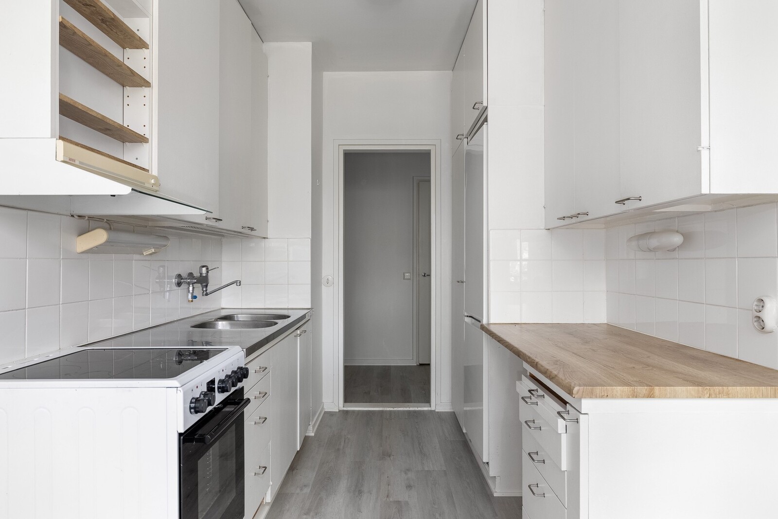 | Keittiön kuvaus | Liesi (Keraaminen liesi), seinät (laatta ja tapetti), lattiat (laminaatti), liesituuletin ja jääkaappipakastin |