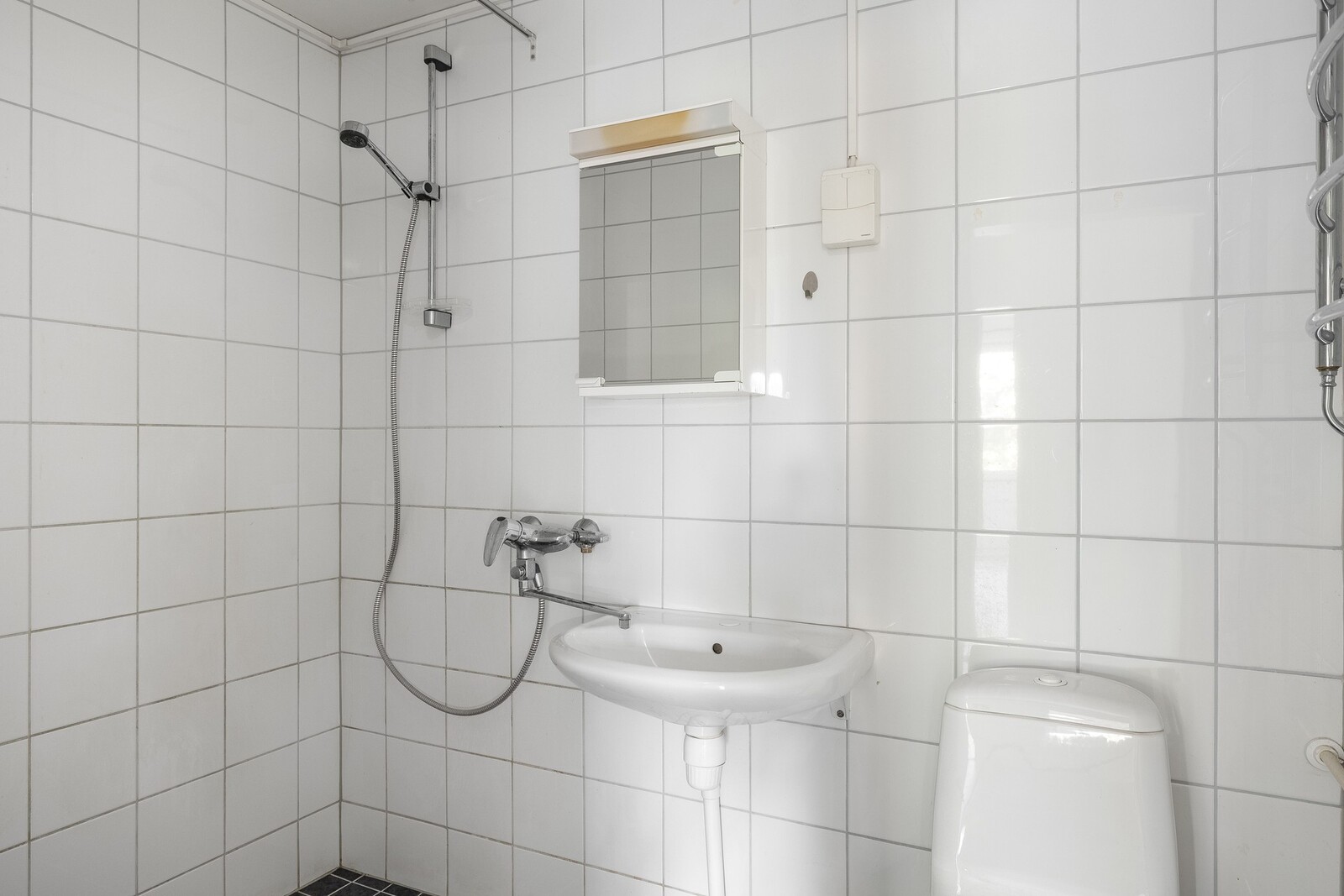 | Kylpyhuoneen kuvaus | WC-istuin ja pesukoneliitäntä, seinät (kaakeli), lattiat (laatta) |