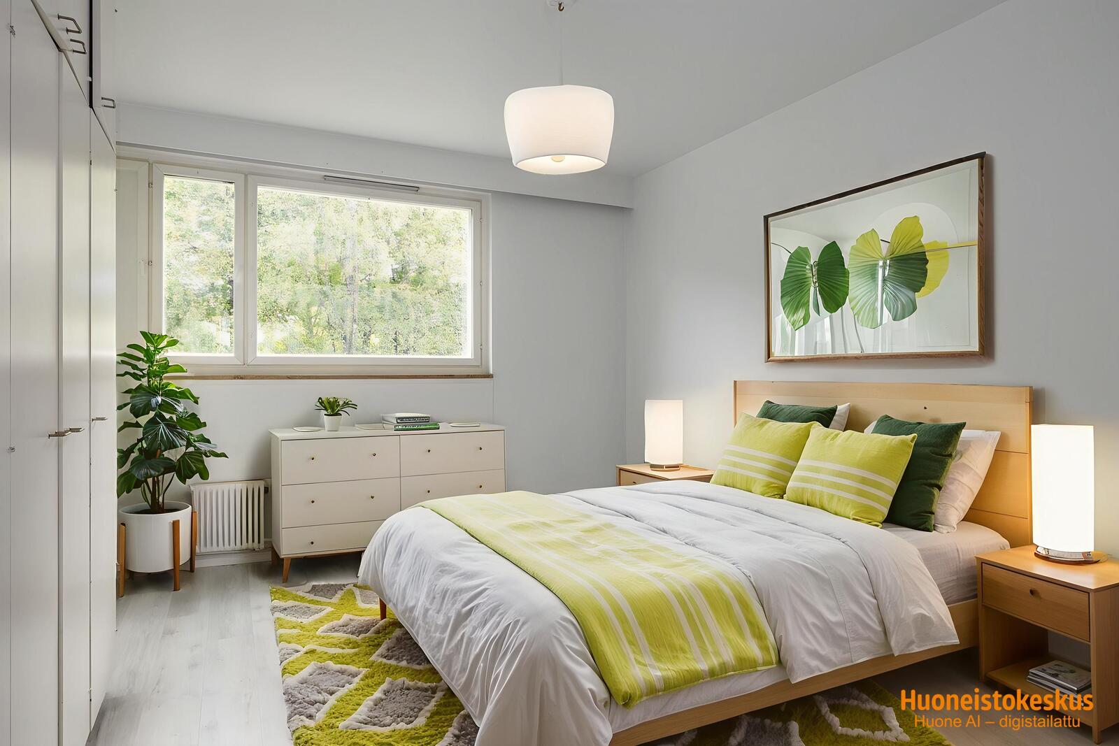 | Makuuhuoneen kuvaus | Lukumäärä: 1, seinät (maali), lattiat (laminaatti) |