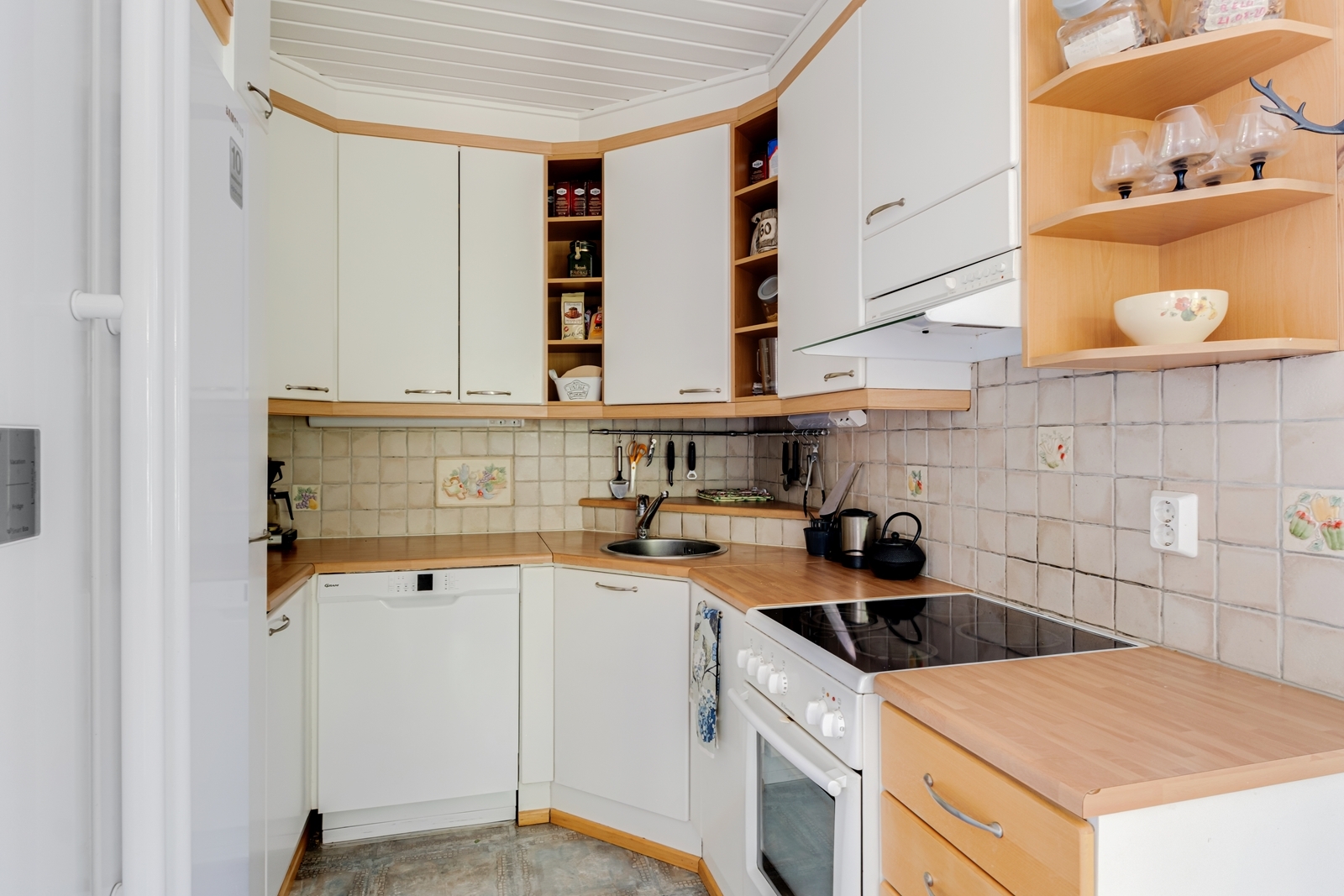 | Keittiön kuvaus | Liesi (Keraaminen liesi), työtasot (laminaatti), lattiat (laminaatti), liesituuletin, jääkaappipakastin ja astianpesukone |