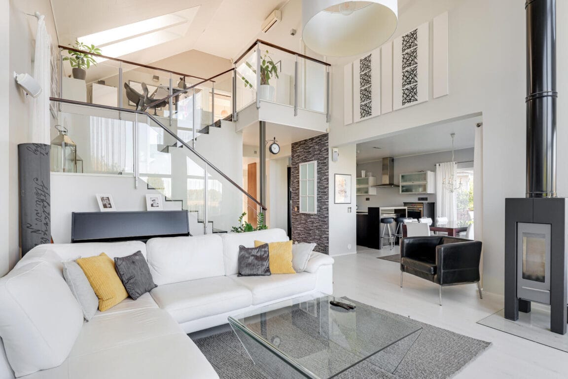 Varaava takka, ilmalämpöpumput ja koneellinen ilmanvaihto lämmöntalteenotolla, sekä aurinkopaneelit auttavat säästämään energiakustannuksissa.