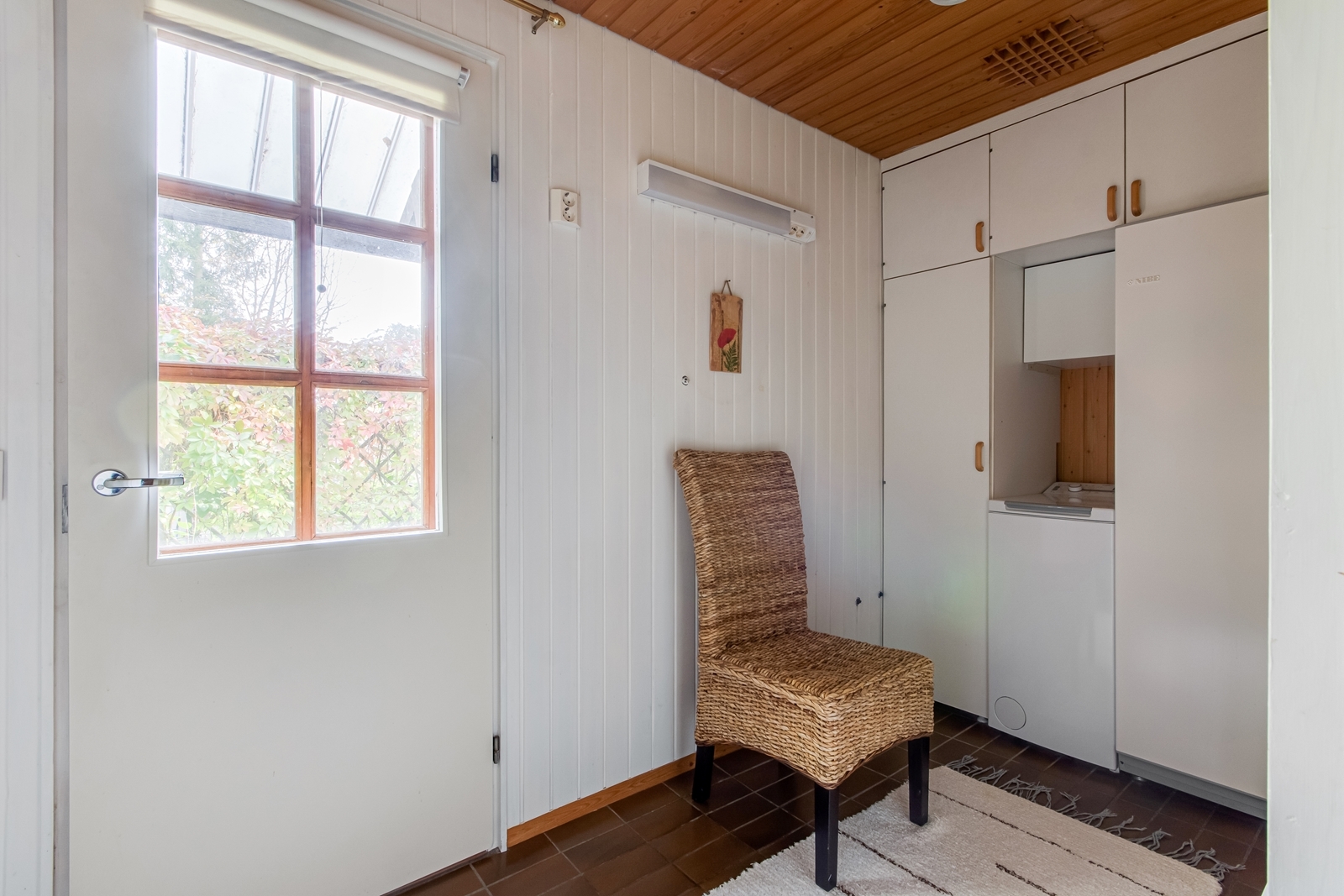 | Kodinhoitohuoneen kuvaus | Pesukoneliitäntä, lämminvesivaraaja, kaapisto, käynti takapihalle, lattia laatta, seinät paneeli, sähkötoiminen lattialämmitys |