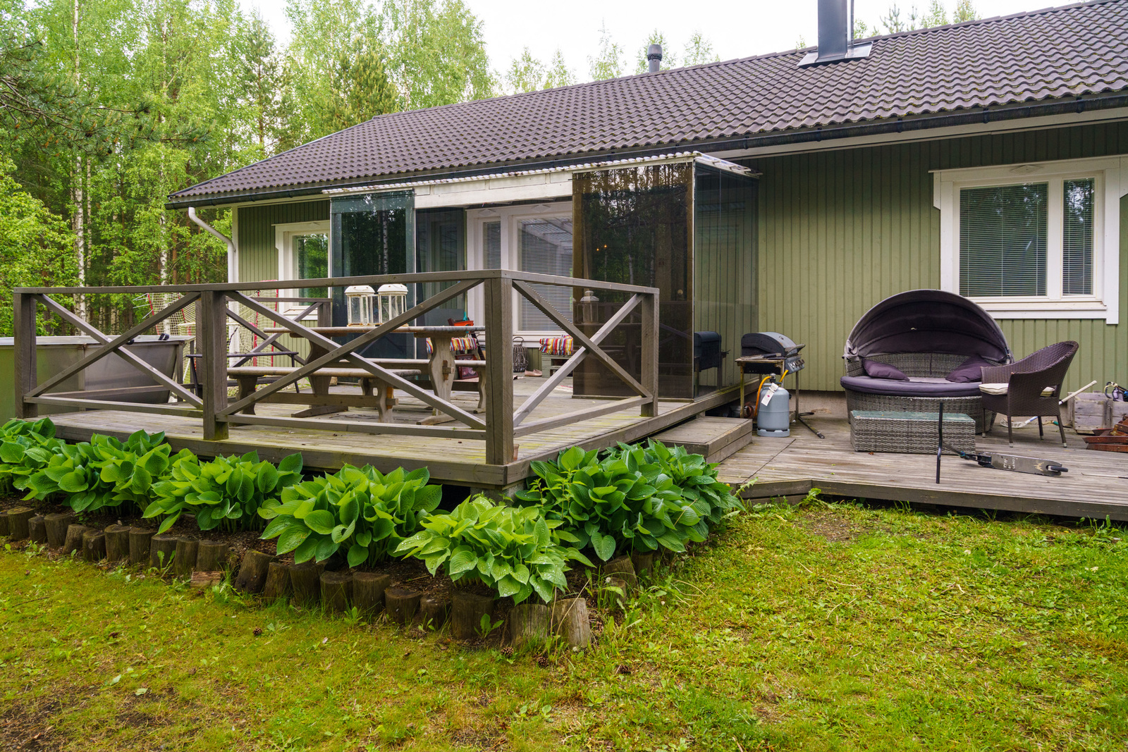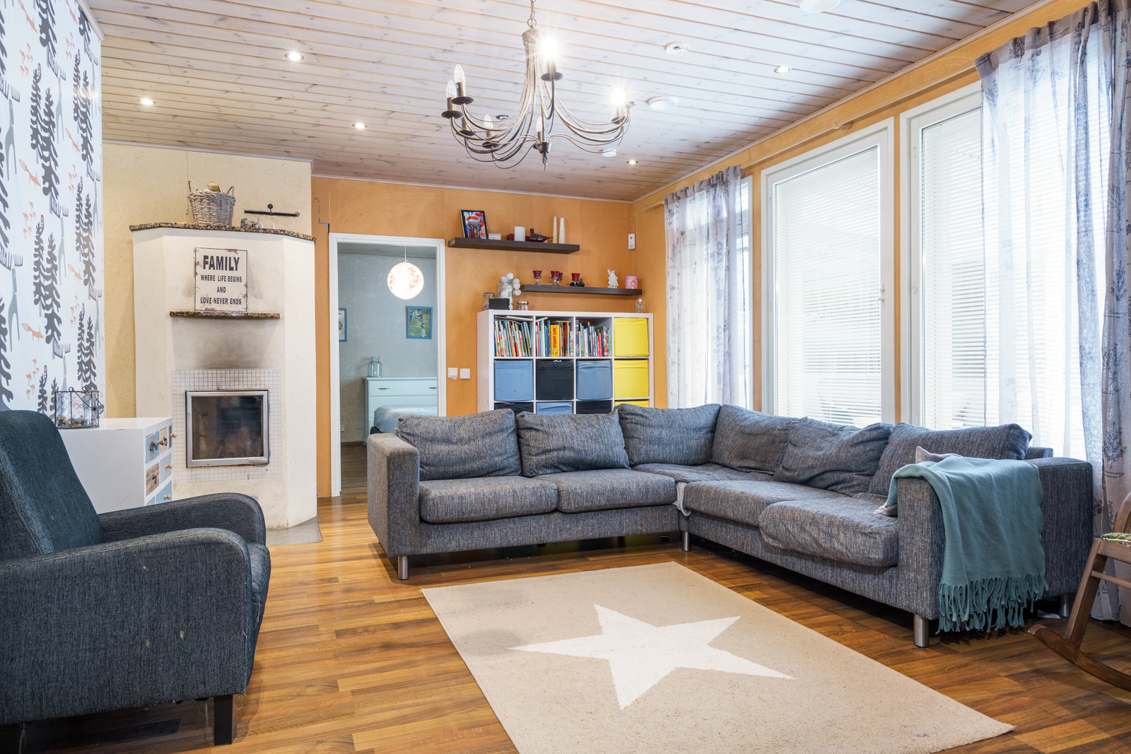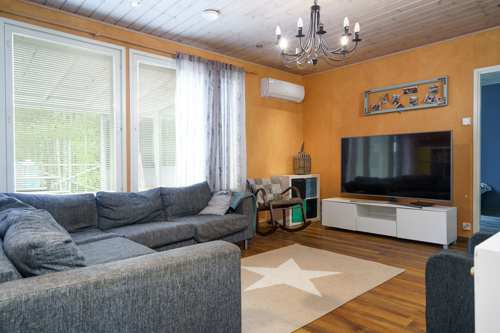 Talossa on kolme makuuhuonetta, tilava olohuone, pesuhuone, sauna sekä kodinhoitohuone ja tilava terassi, joten tilaa riittää mukavasti kaikille perheenjäsenille.