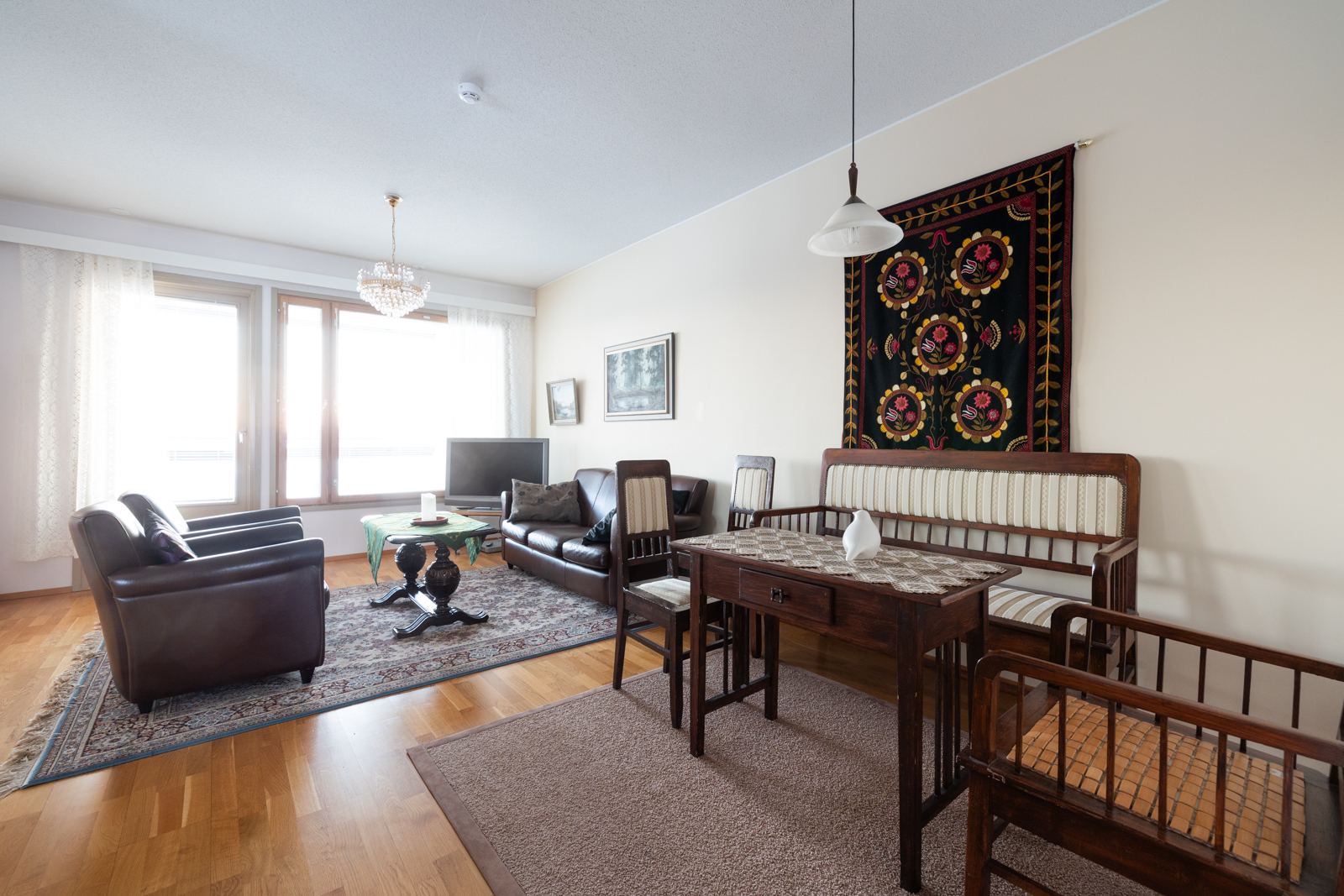 | Olohuoneen kuvaus | Seinät (maali), lattiat (parketti) |