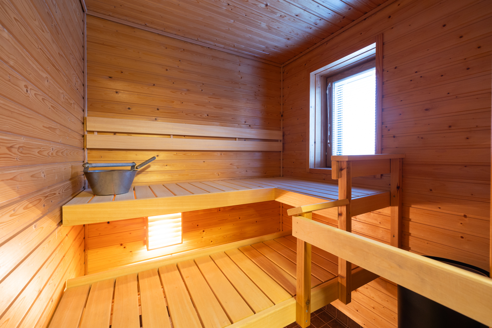 | Saunan kuvaus | Seinät (puu), lattiat (laatta), Sähkökiuas |