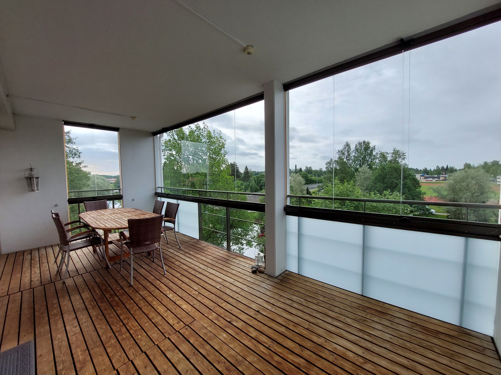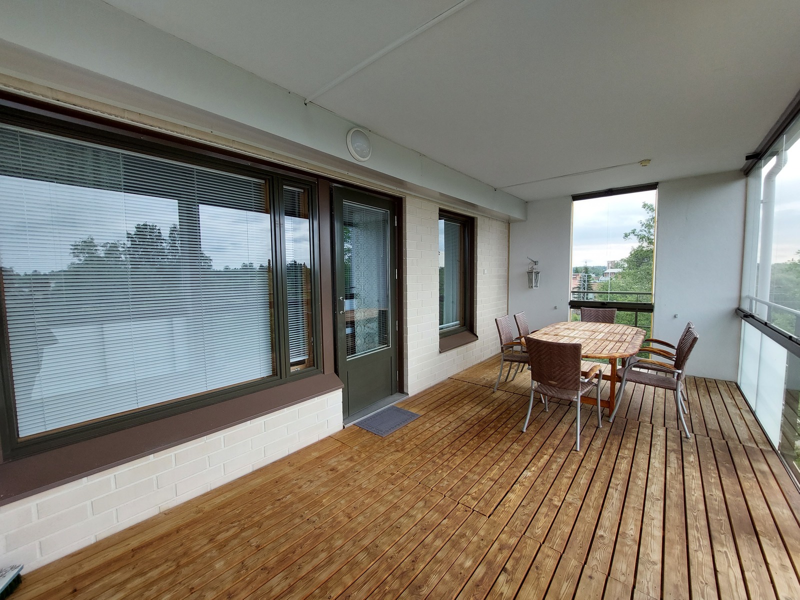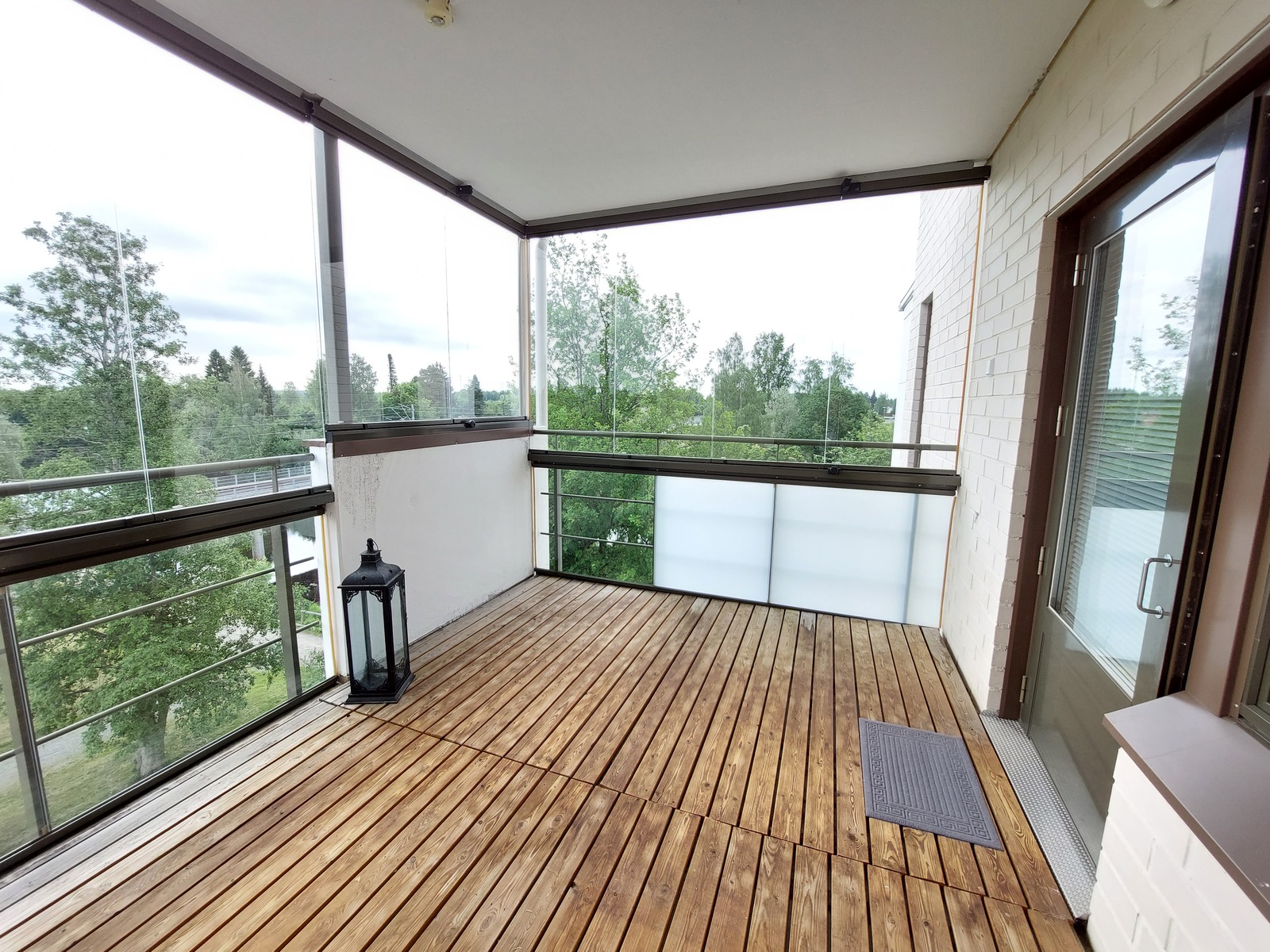 Upea ylimmän 4 krs:n kulmahuoneisto hissitalossa. Asunnossa 2 lasitettua tilavaa parveketta joista poikkeuksellisen upeat näköalat, mitä on vaikea rahassa mitata. Toiselta parvekkeelta avautuu maisemat Kulttuurikeskus Vanhaan Paukkuun ja toisesta voit ihailla kaunista jokimaisemaa. Parvekkeelta näkymät myös pesäpallokentälle, joten urheilu/kulttuuri ja luonnonmaisemat yhdistyvät kauniisti. Omaleimainen pohjaratkaisu luo kotiin personallisuutta ja luonnetta. Tilavassa pesuhuoneessa kivasti tilaa myös pyykkihuollolle. Tällaista perhekoon asuntoa harvoin tarjolla, tartu tilaisuuteen. Hyvä helppohoitoinen vaihtoehto omakotitaloasumiselle.