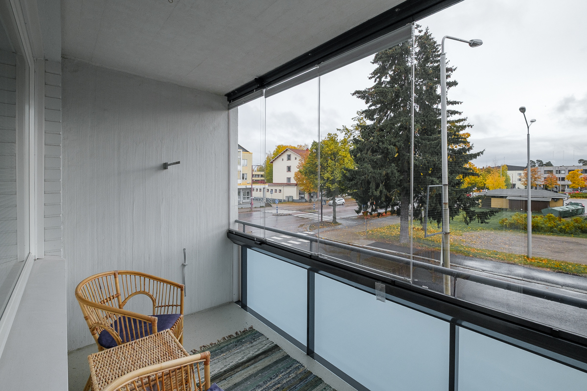 parvekelasitus jokaiseen parvekkeeseen. Parvekejulkisivu maalattu, parvekelinjoihin