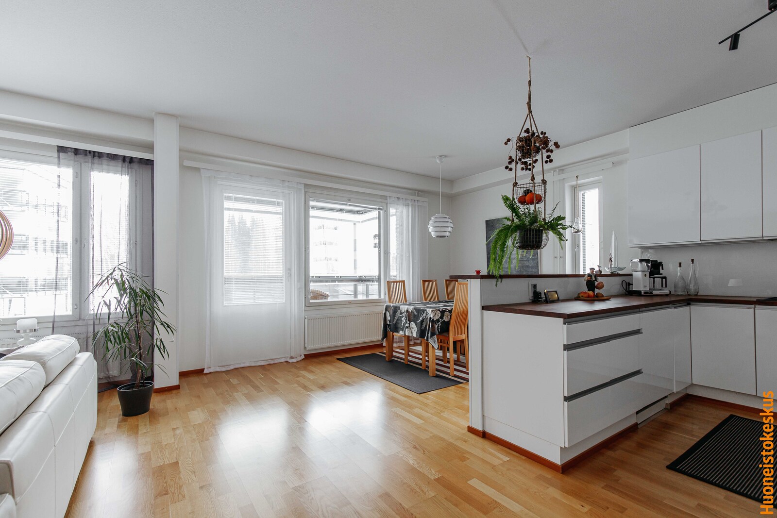 Kaunis ja huolellisesti ylläpidetty asunto, joka hurmaa jo ensiaskelten aikana. Tilavassa eteisessä hyvin säilytystilaa niin kengille kuin ulkovaatteillekin. Kolme makuuhuonetta, jotka varustettu vaatekaapein. Olohuone, keittiö ja ruokailutila muodostavat avoimen ja yhtenäisen tilan. Erillinen kodinhoitotila on kätevä sujuvan arjen helpotus, kuten myös erillinen wc. Saunassa nautit tornikiukaan löylyistä, pesuhuoneesta pääset halutessasi vilvoittelemaan lasitetulle, jokirantaan suuntautuvalle parvekkeelle. Toinen lasitetuista parvekkeista sijoittuu olohuoneen puolelle, täällä nautit rauhallisista puiston ja sisäpihan näkymistä.