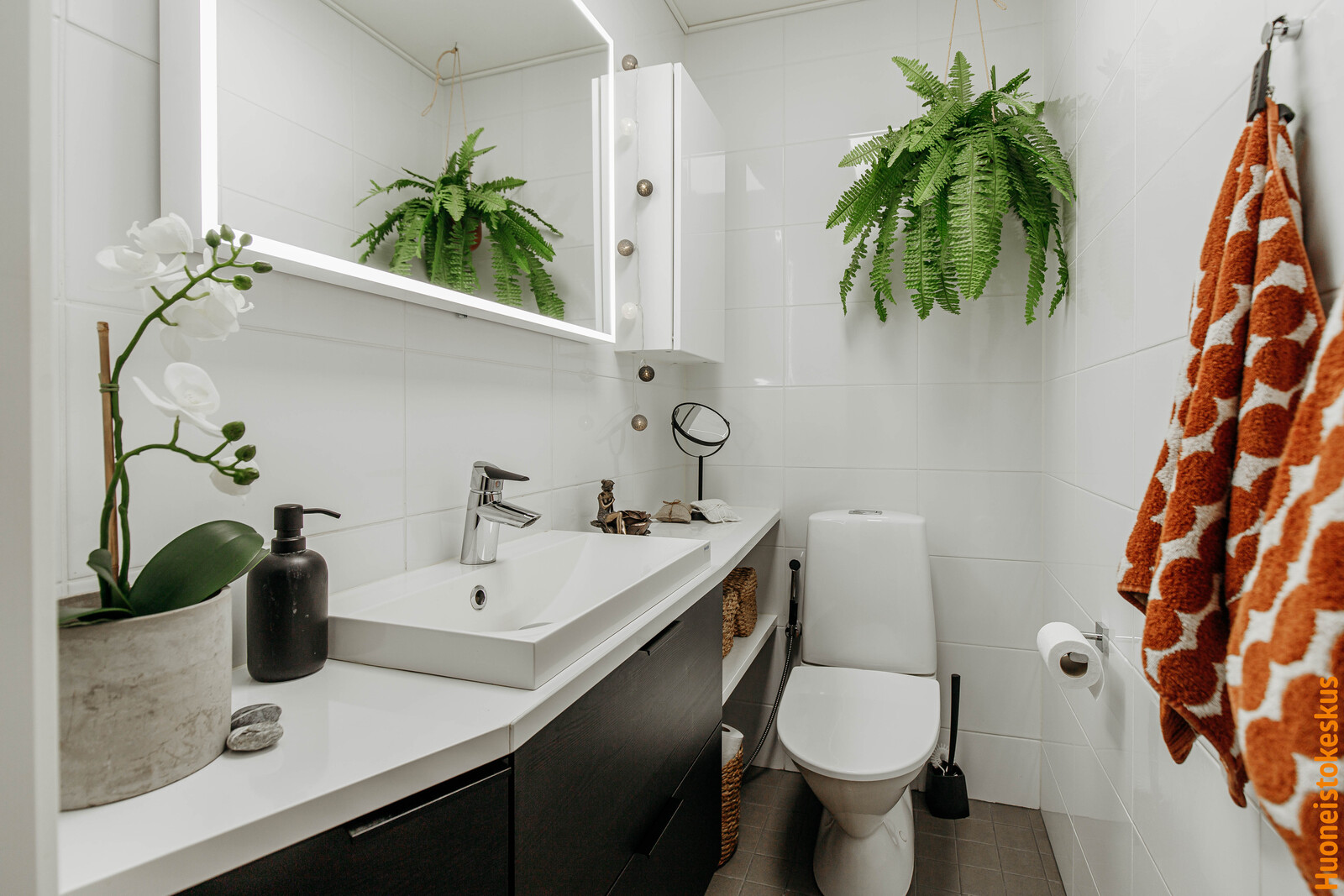 | Kylpyhuoneen kuvaus | Peili, wc-istuin, lattialämmitys ja suihku, seinät (kaakeli), lattiat (laatta) |
