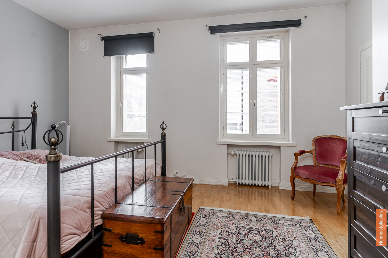 Asunnossa on kaksi eleganttia ja tilavaa makuuhuonetta, jotka tarjoavat täydellistä rauhaa ja yksityisyyttä. Asunnossa on myös oma sauna sekä reilunkokoinen erillinen wc, jossa on hyvin tilaa myös pesukoneelle.