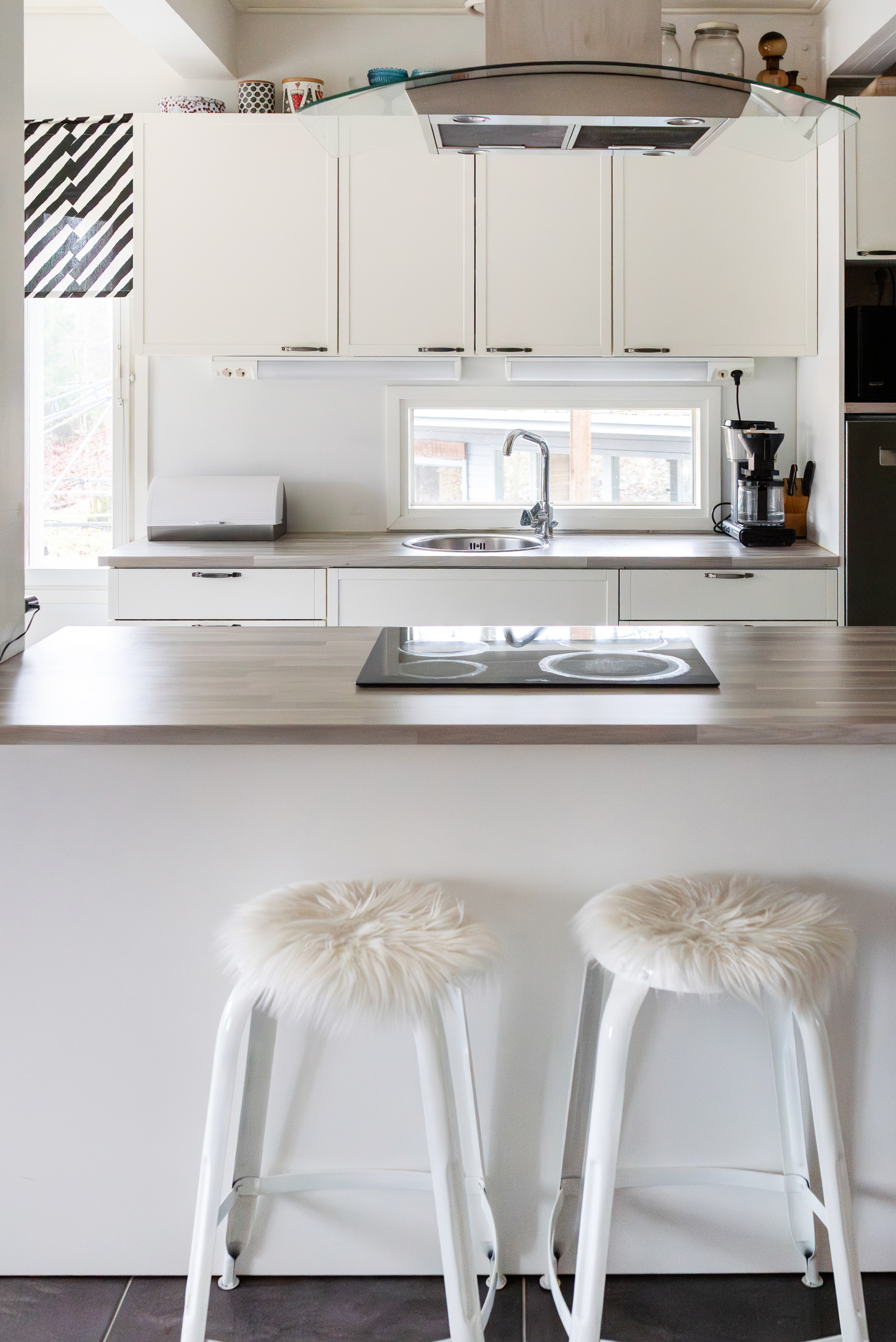 Liesi (Keraaminen liesi), lattiat (laatta), uuni (kiertoilma), astianpesukone (integroitu), jääkaappi, erillinen pakastin ja liesituuletin |