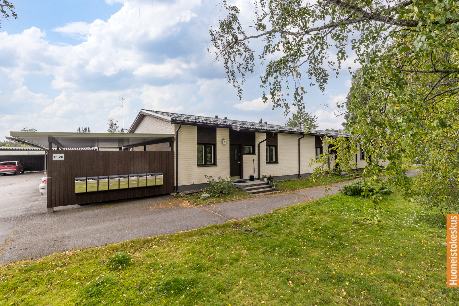 Asuntoon kuuluu autokatospaikka ja oma ulkovarasto. Yhtiö sijaitsee omalla tontilla.