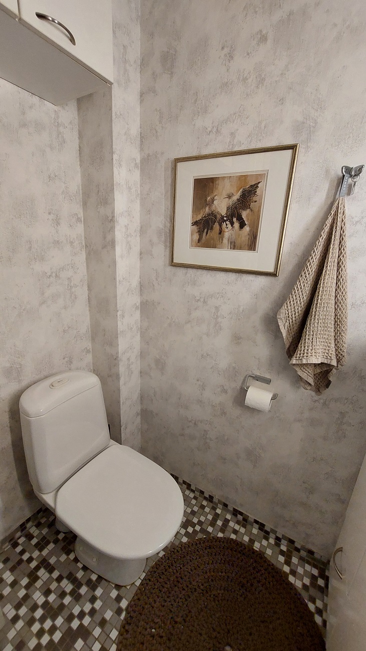 Lukumäärä: 1, WC-istuin, seinät (Tapetti), lattiat (Laatta) |