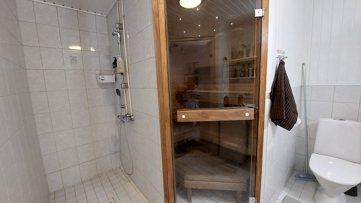 Seinät (paneeli), lattiat (laatta), Sähkökiuas, Kiuas ja suihkun termostaatti uusittu 2024 |
