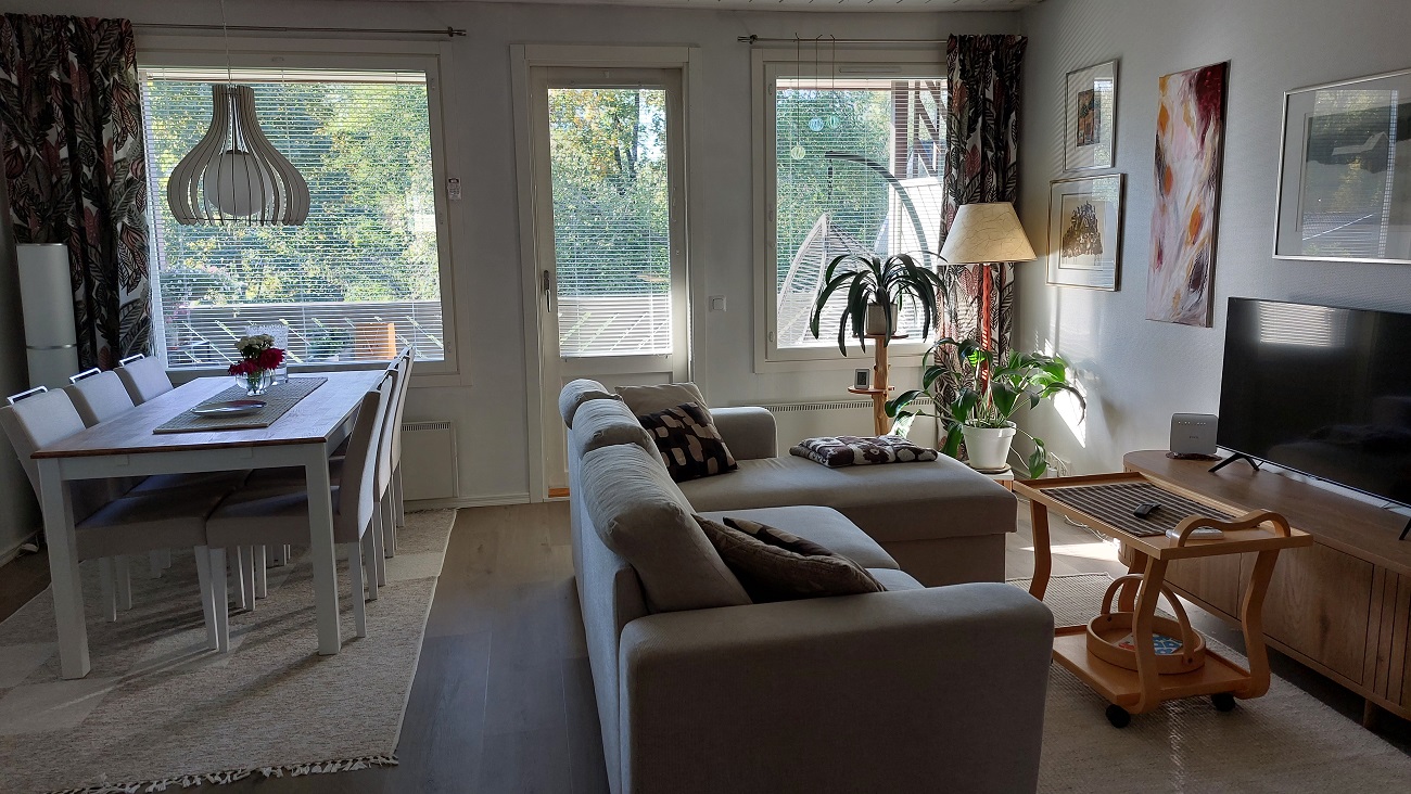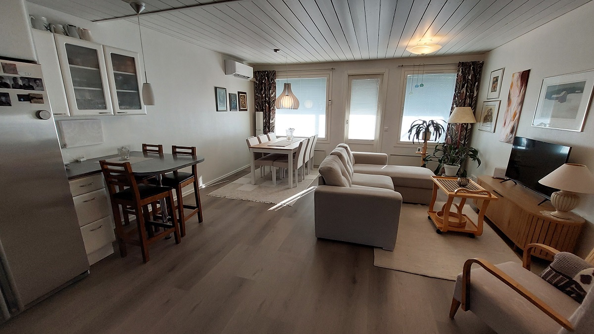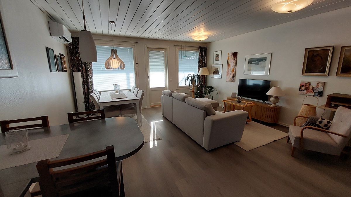 Juuri tyylikkäästi toteutetun toteutetun remontin jälkeen oleskelutilat ja keittiö ovat hyväkuntoisia. Sauna ja makuuhuoneet ovat alakerrassa ja sieltä on käynti omalle terassipihalle. Rauhallinen paikka, kuitenkin kaikkien palvelujen vieressä. Ilmalämpöpumppu 2024. Ei lain edellyttämää Energiatodistusta, edellinen mennyt vanhaksi 3/2025. yhtiö tilannut uuden.