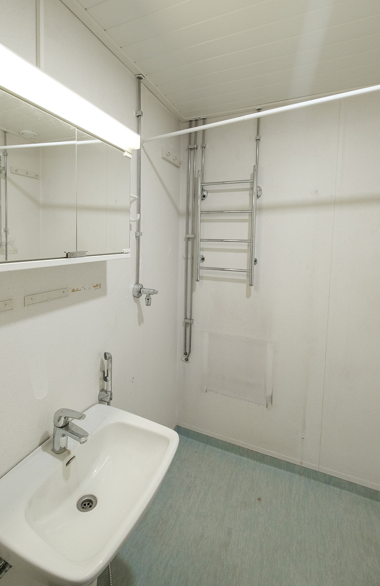 Suihku, pesukoneliitäntä, peilikaappi ja wc-istuin, seinät (kaakeli) |