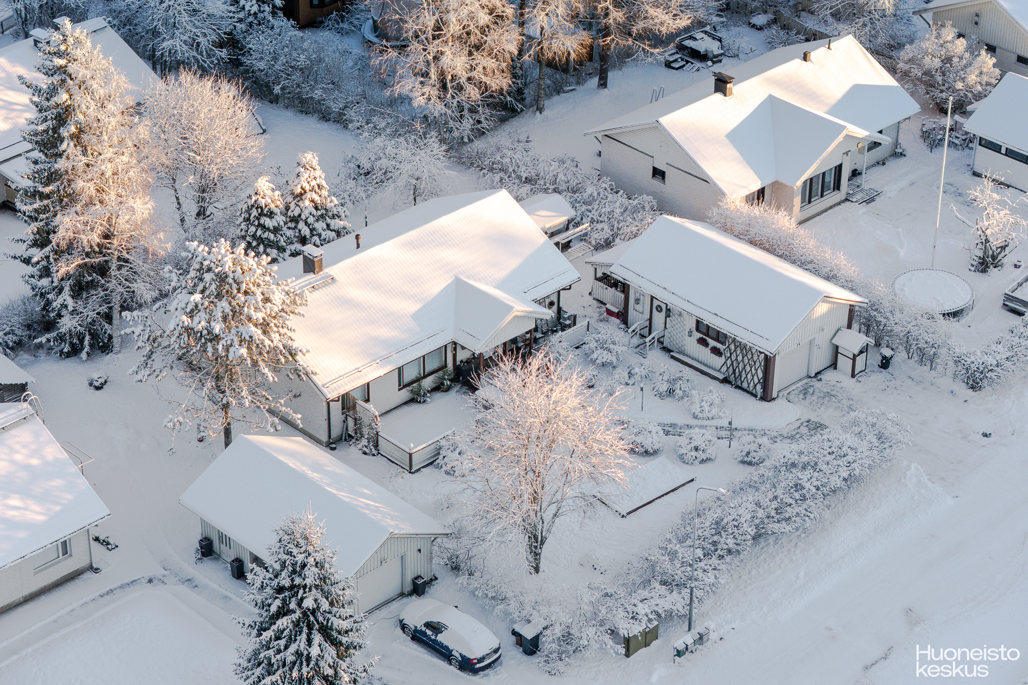 | Lisätietoja pinta-alasta | Asuinrakennus: Huoneistoala 103,8 m² Kerrosala 118,4 m² Rakennusala 124,5 m² Autotalli ja varasto: Huoneistoala 32,3 m² Kerrosala 37,0 m² Pinta-alatiedot on saatu rakennuspiirustuksista, eikä niitä ole tarkistusmitattu, joten ne saattavat poiketa olennaisestikin nykymääräysten mukaan mitattavista pinta-aloista. |