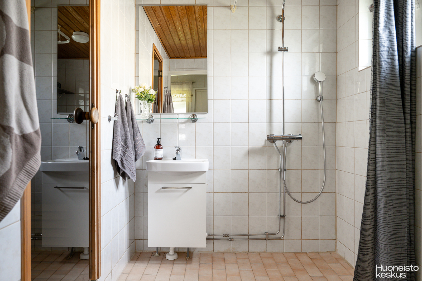 Kotiin on tehty vuosien mittaan pintaremonttia. Lattiat ovat käytännöllistä laminaattia, seinissä on kauniit tapetit ja saunaan on vaihdettu lauteet sekä kiuas. Saunassa on valmius myös puukiukaaseen. Kylpyhuone on siistissä alkuperäiskunnossa ja siitä voikin remontoida unelmiensa kotispan. Talossa on koneellinen ilmanvaihto ja lämmön talteenotto.