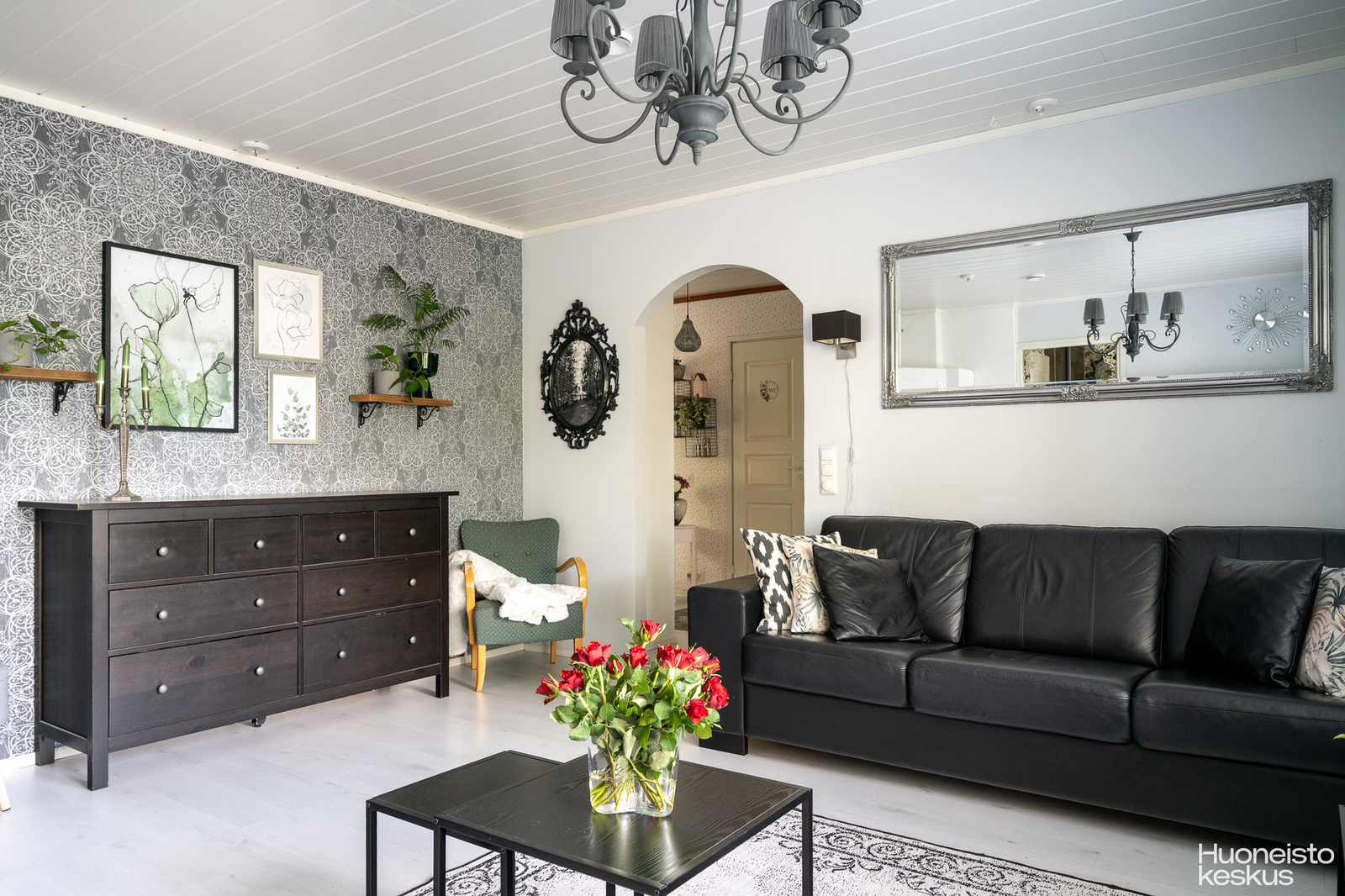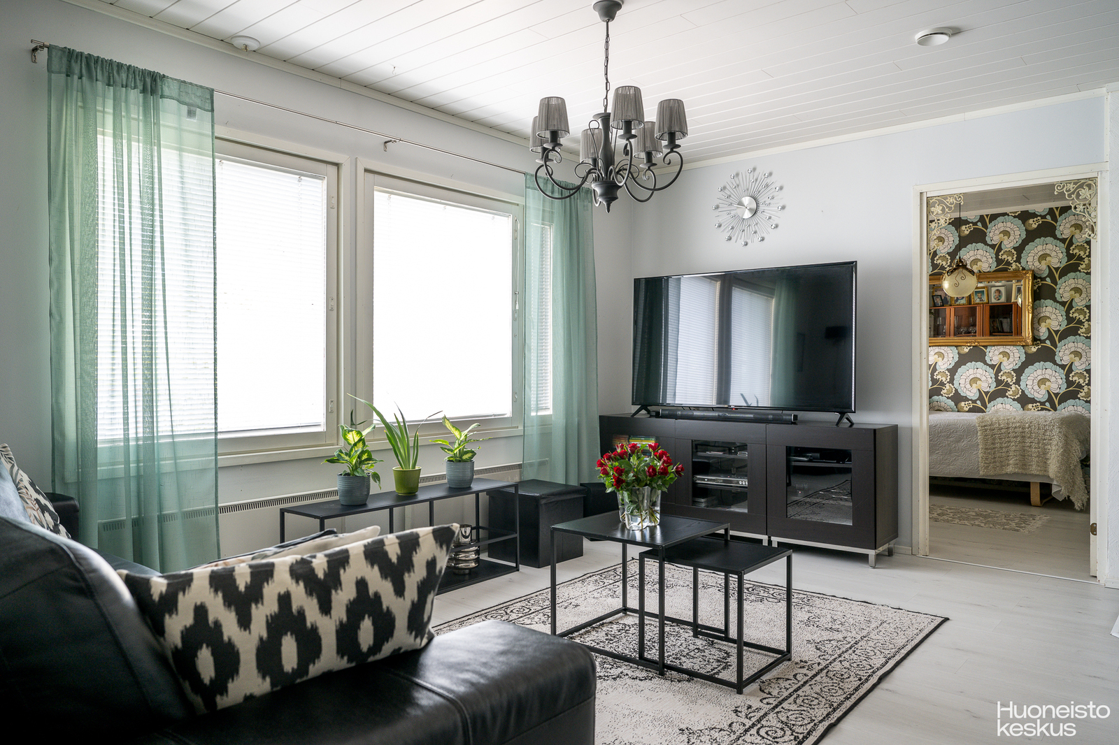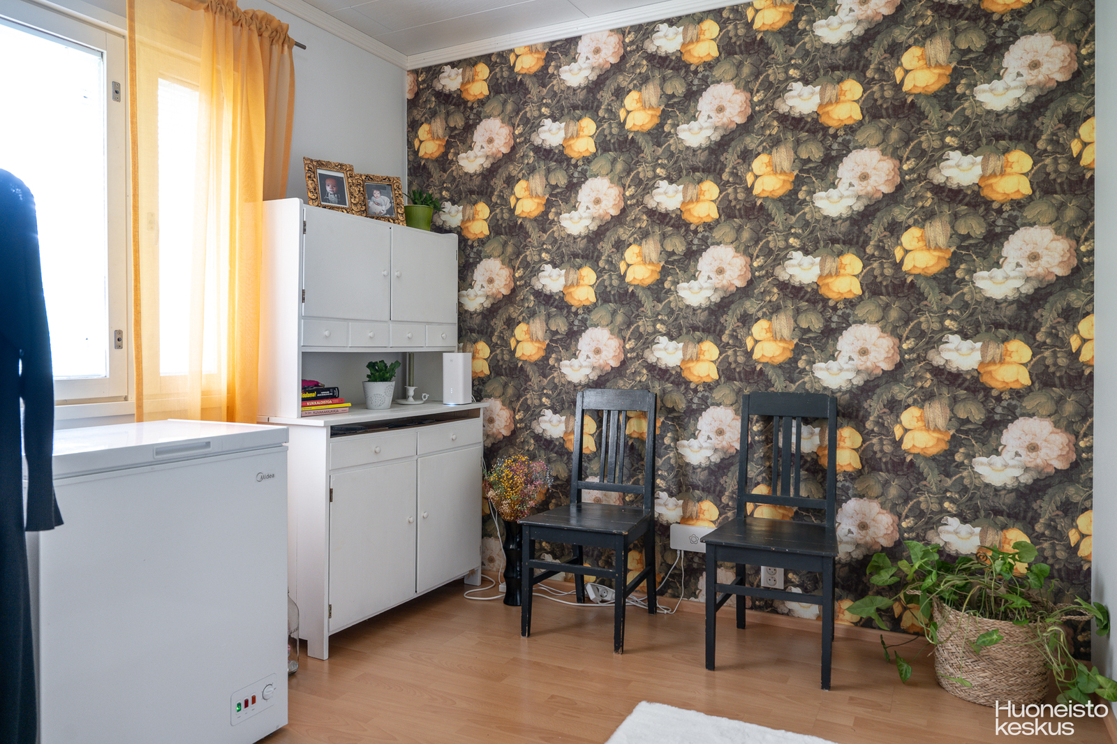 | Olohuoneen kuvaus | Seinät (tapetti), lattiat (laminaatti) |