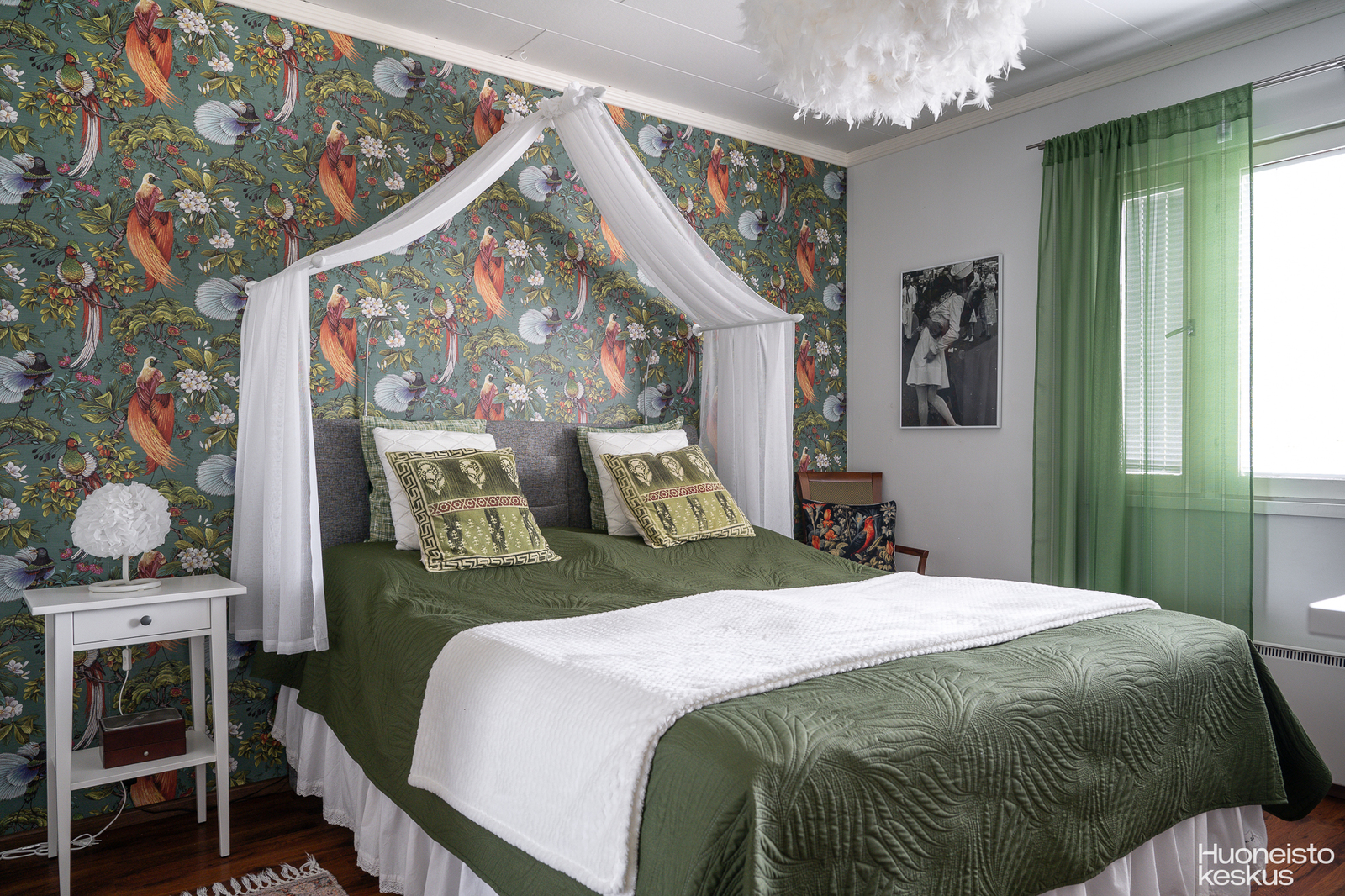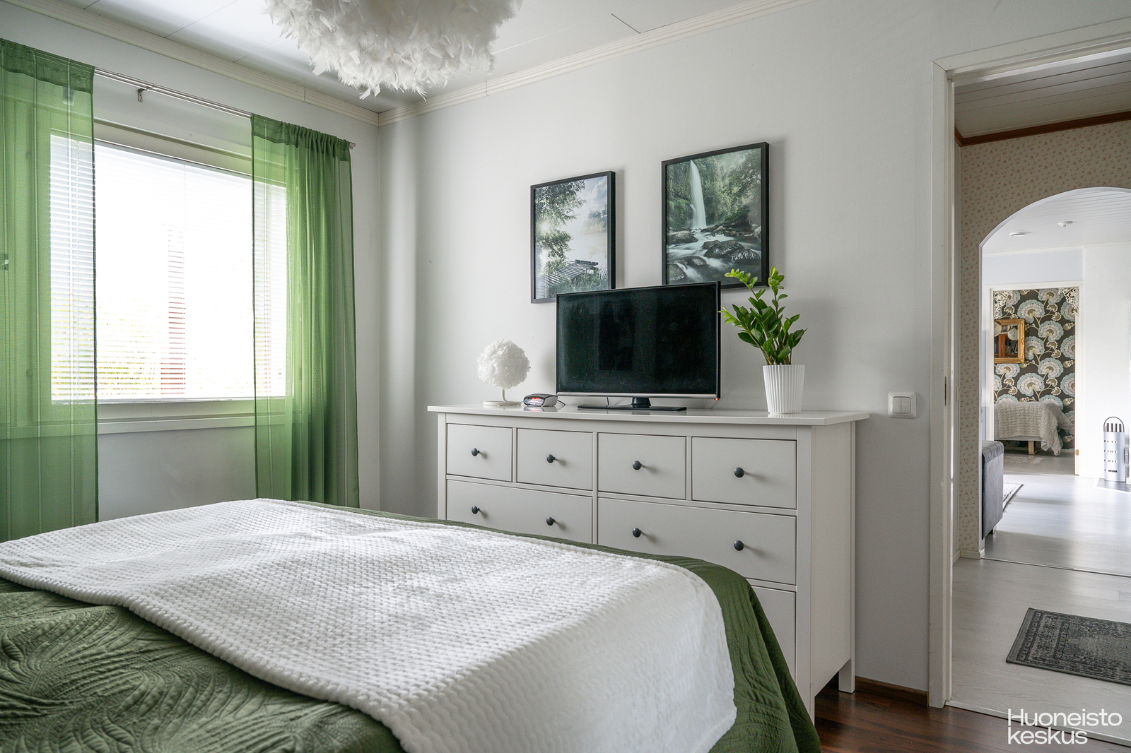 | Makuuhuoneen kuvaus | Lukumäärä: 3, seinät (tapetti), lattiat (laminaatti) |