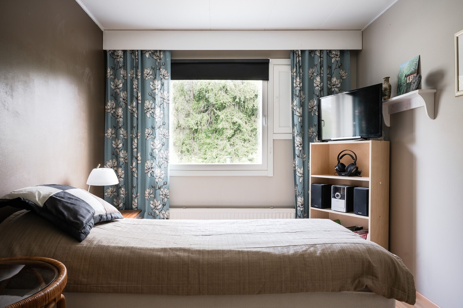 | Makuuhuoneen kuvaus | Lukumäärä: 2, seinät (maali ja tapetti), lattiat (laminaatti) |
