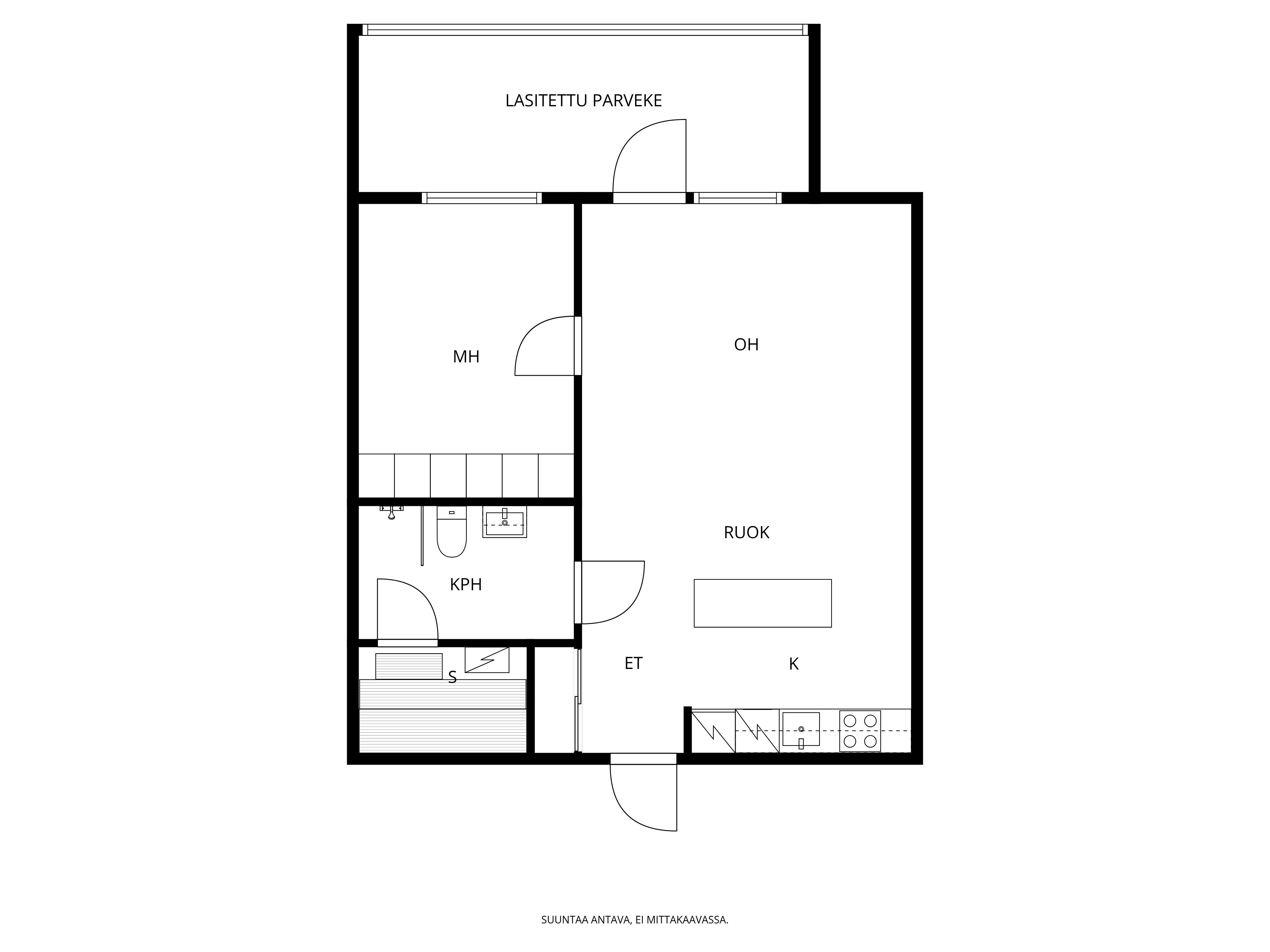 | Huoneistoselitelmä | 2h, kt, kh, s, lasitettu parveke |
