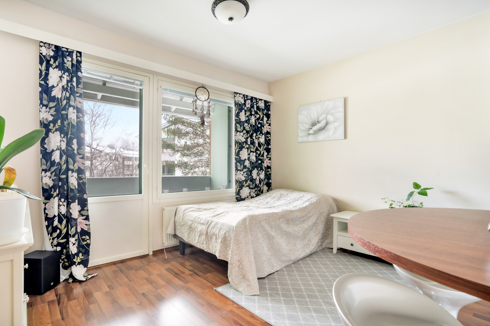 | Olohuoneen kuvaus | Seinät (maali), lattiat (laminaatti) |