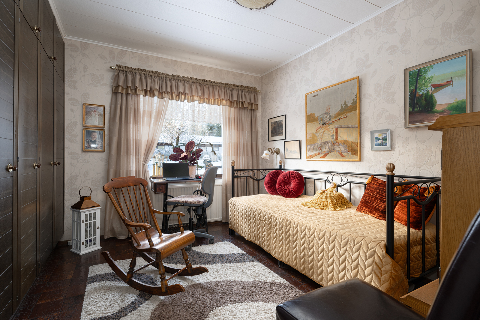 Lukumäärä: 3, seinät (tapetti ja kivi), lattiat (muovimatto), Makuuhuoneiden väliset seinät levytetty ja tapetoitu n.4vuotta sitten. |