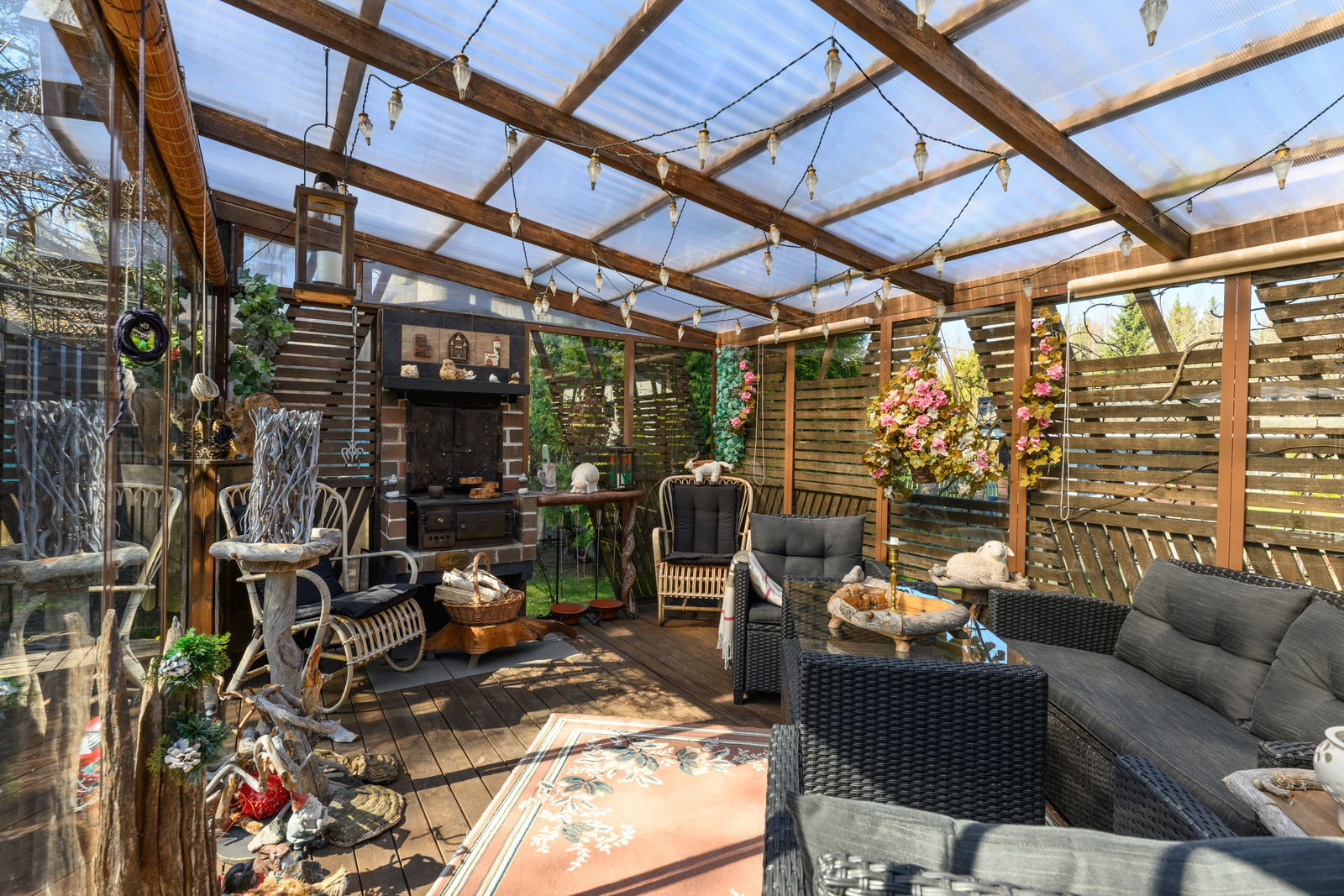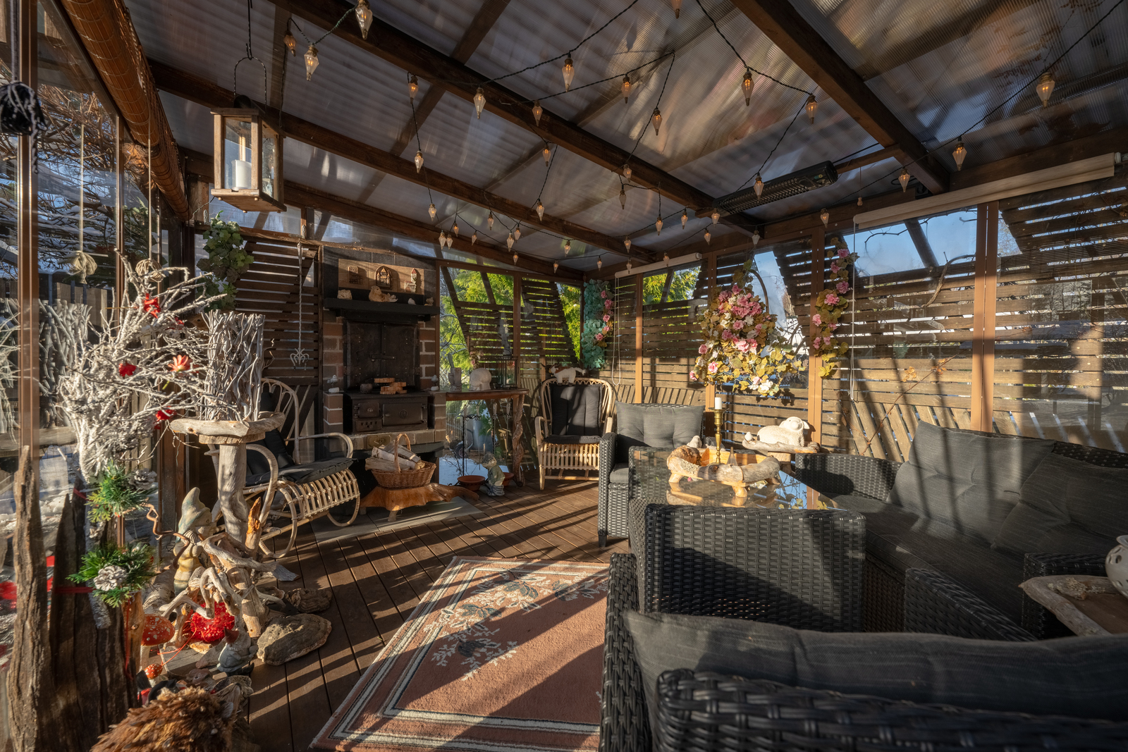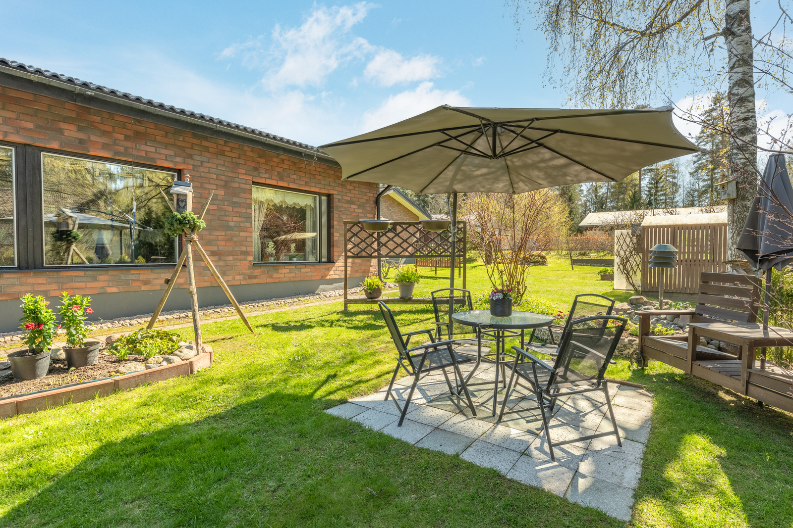 Kaunis, hyvin hoidettu tontti, jossa kukkia ja hedelmiä, sekä marjoja. Tontilla sijaitsee myös viehättävä grillikatos ja palju. |