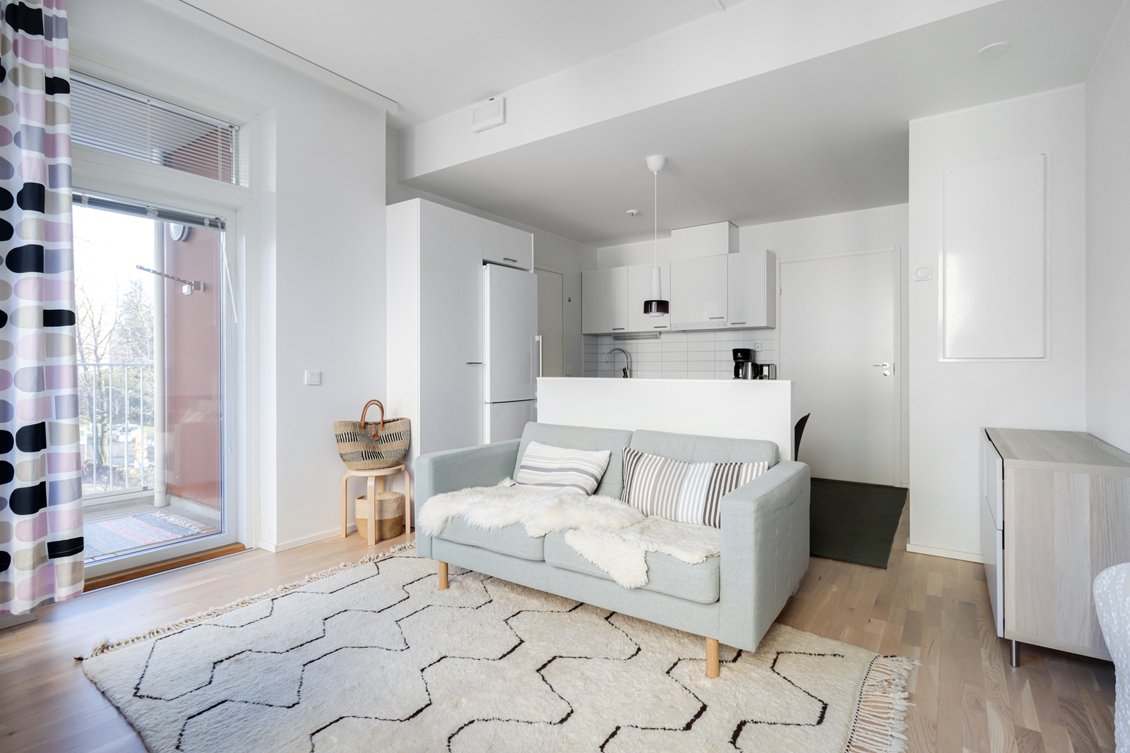 Hyvien yhteyksien lähellä sijaitseva tyylikäs asunto, jossa on kivoja yksityiskohtia ja runsaasti valoisuutta tuovat isot ikkunat. Asunnossa on reilu huonekorkeus keittiötilasta eteenpäin ja viihtyisä parveke, joka jatkaa tilaa ympäri vuoden. Keittiötilaan mahtuu myös mukavasti kunnon ruokapöytä ja se on rajattu matalalla seinällä muusta huoneesta, tukkimatta valon kulkua ja jonka saa pois halutessaan. Kylpyhuone on tämän ikäisessä talossa luonnollisesti tilava.