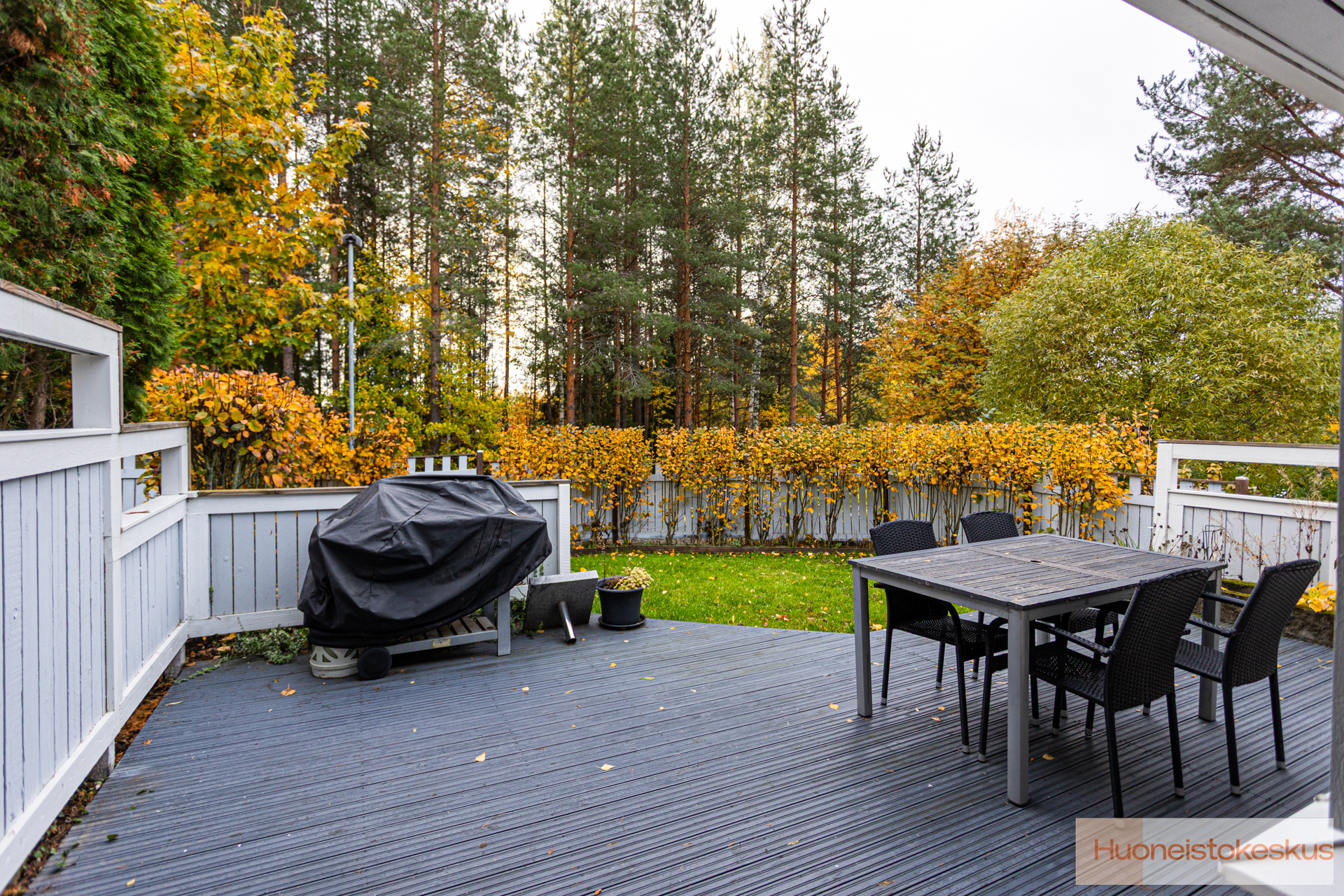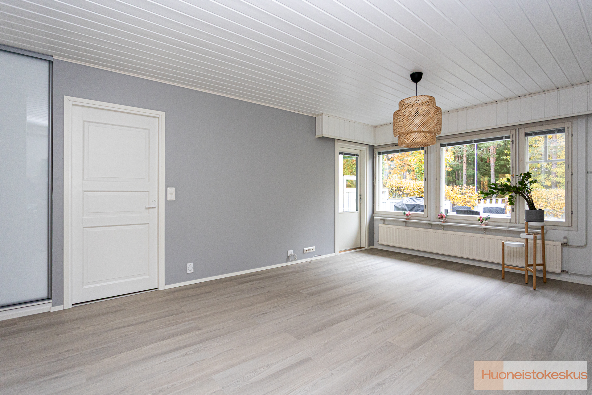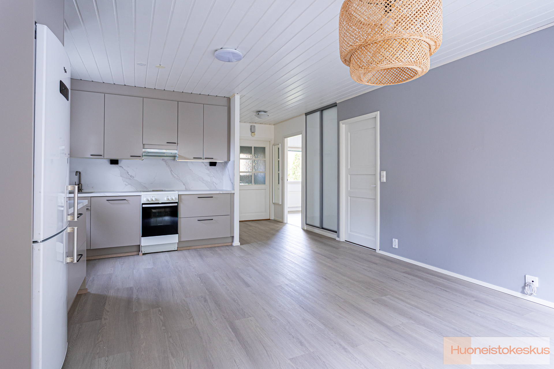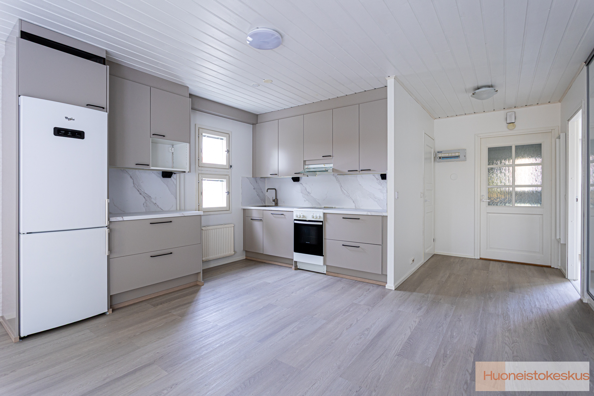 Koti on valmiina muuttamaan – avokeittiö on uusittu vuonna 2025 ja tarjoaa modernit puitteet ruoanlaittoon. Olohuoneesta avautuu osittain katettu terassi ja suojaisa aidattu piha, täydellinen paikka rentoutumiseen tai yhdessäoloon perheen ja ystävien kanssa. Myös sauna on juuri remontoitu, lisäten arjen mukavuutta ja viihtyvyyttä.