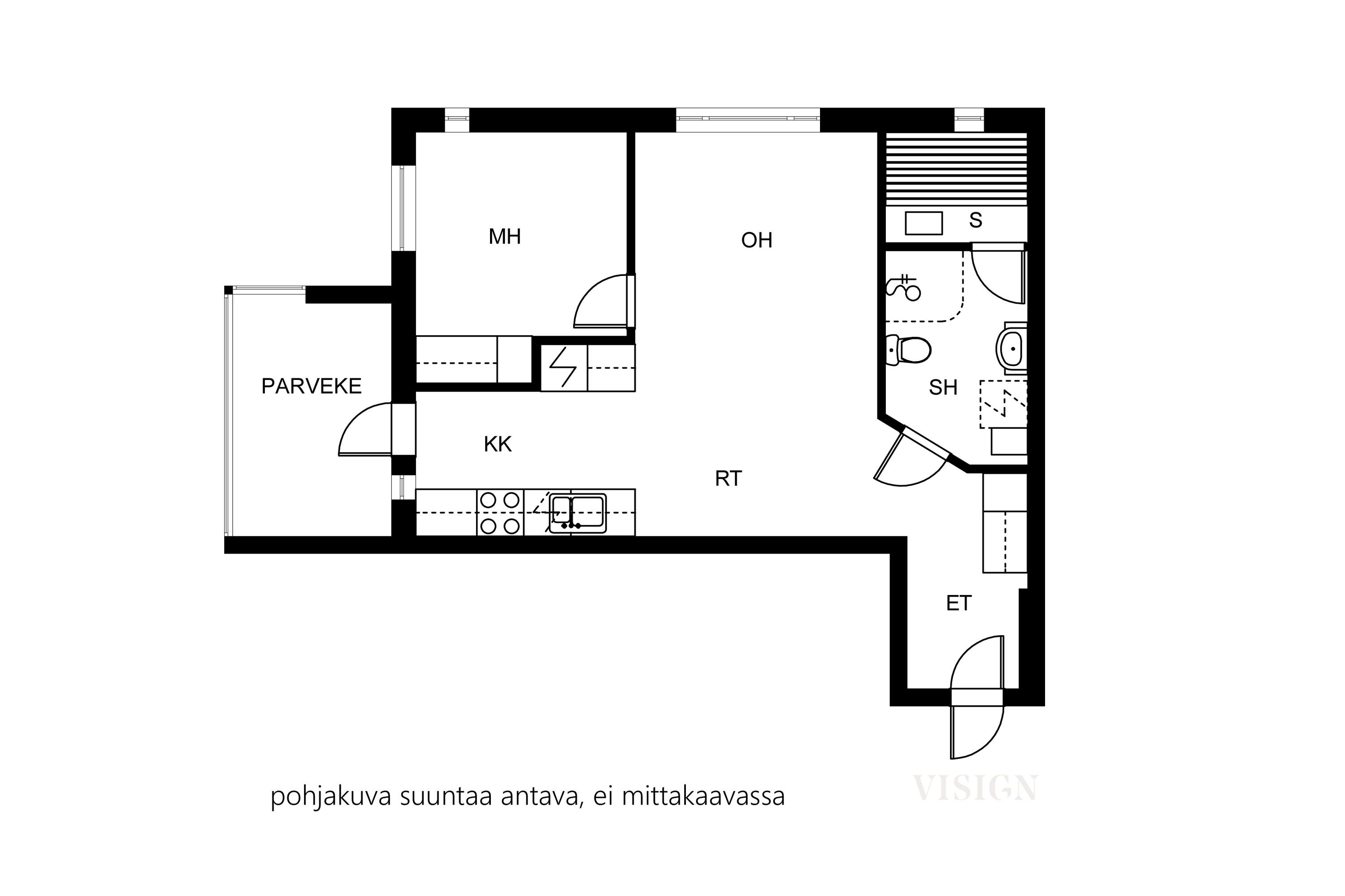 Myytävänä valmiiksi vuokrattu kaksio parvekkeella ja saunalla. Taloyhtiöllä oma tontti.