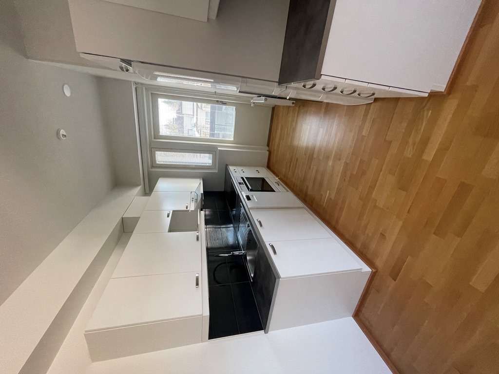 | Keittiön kuvaus | Liesi (Keraaminen liesi), työtasot (laminaatti), seinät (maali), lattiat (parketti), jääkaappipakastin, liesi, liesituuletin ja astianpesukone |