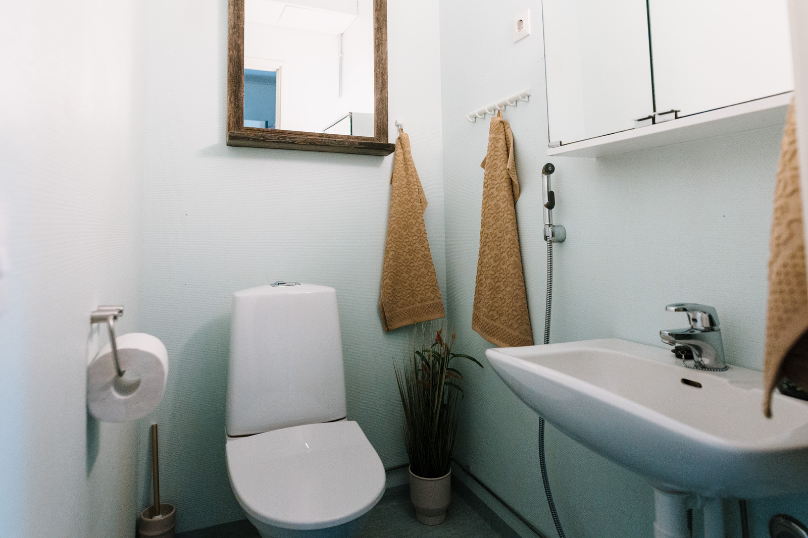 | WC-tilojen kuvaus | Lukumäärä: 1, Bidee-suihku ja peilikaappi, seinät (Lasikuitutapetti), lattiat (Muovimatto) |